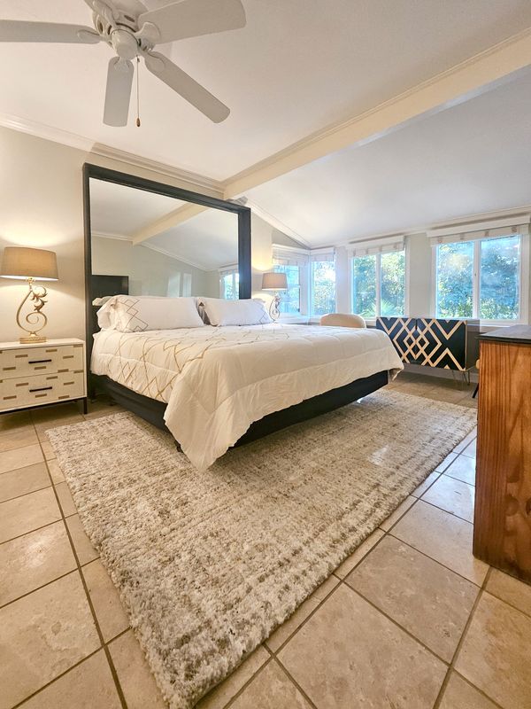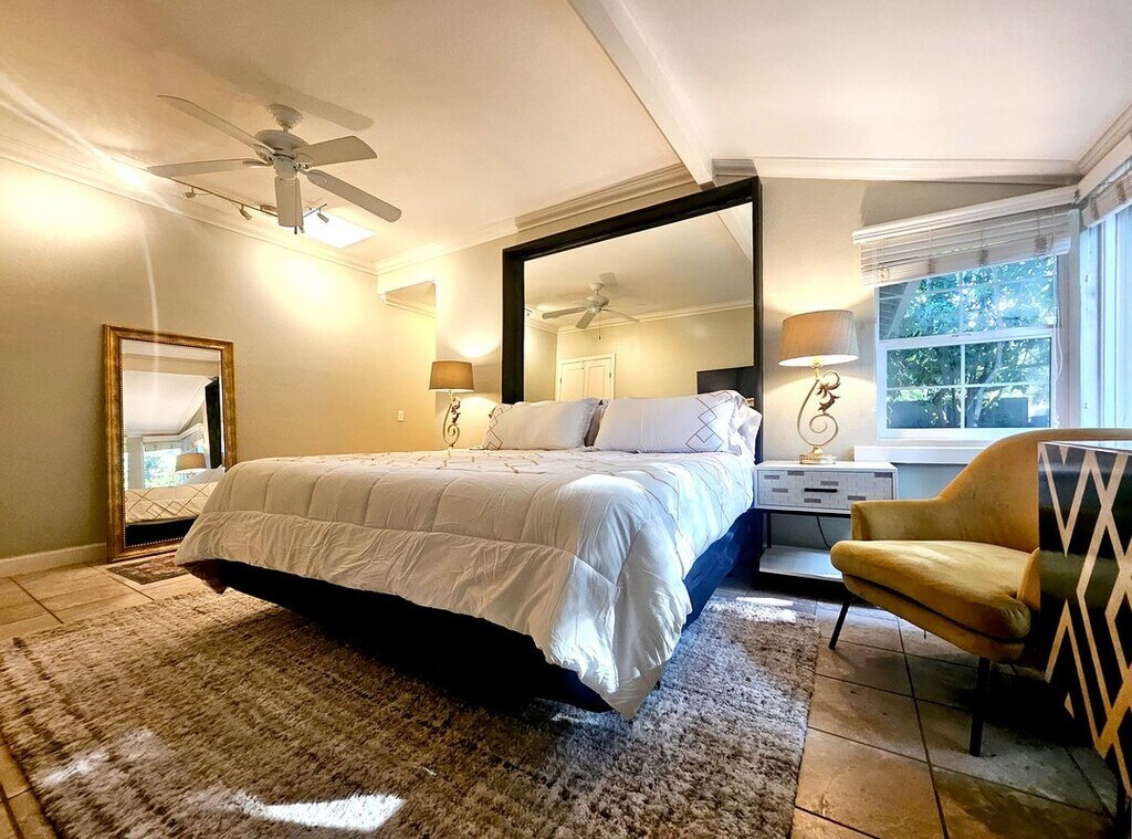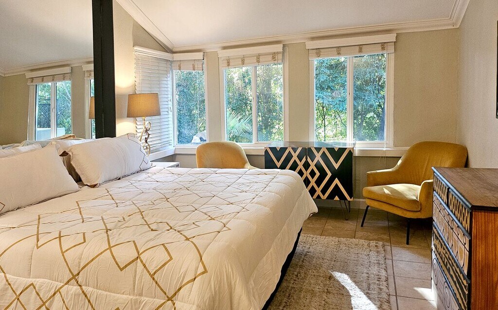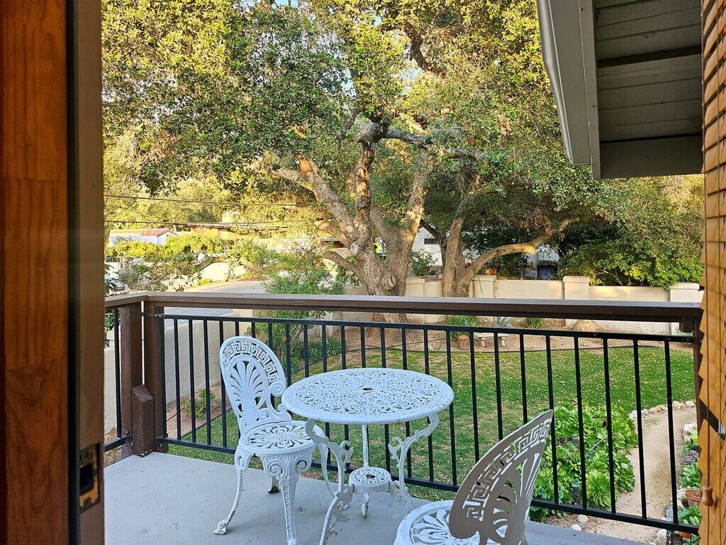 PENDING. Enjoy the serenity of indoor/outdoor living in this 5-bedroom home, comprised of 4-ensuite bedrooms, plus an additional bedroom with a nearby ½ bath. Complete with a privacy wall, fencing, and a wrought-iron gate, this pet-friendly haven in the heart of Mission Canyon features views of the mountains, old seminary spire, century-old oak trees, and a beautiful redwood tree located near a gazebo, fire pit, and lit seating and eating area perfect for entertaining alfresco. Take pleasure in a plant-filled, front yard and mountain view from the comfort of a tranquil living room which includes a colorful fireplace and glass sliding doors that open onto the front deck. The gourmet kitchen features granite surfaces, a gas cooking island, dishwasher, wine fridge, storage, and glass racks, and flows openly into the dining room and to an eating patio beyond. Located steps from the Natural History Museum, Mission, and parks as well as a short drive to stores, this home features ample parking with a 2-car garage, and front and back, off-street parking pads for multiple vehicles, one with room for an RV. The main floor has central ac/heat, 2 laundry facilities, and occupies 2,100 sq. feet; the large decks and patios add an additional 1000 sq. feet, and the upstairs is 500 sq. feet, outfitted with an open living space, vaulted ceilings, a kitchenette, fireplace, balcony, bathroom, ac & heater units, and a separate entry, making this home an ideal rental for a family or group. Don’t miss out on this opportunity to make Santa Barbara your home. Contact us today at to schedule a viewing!
