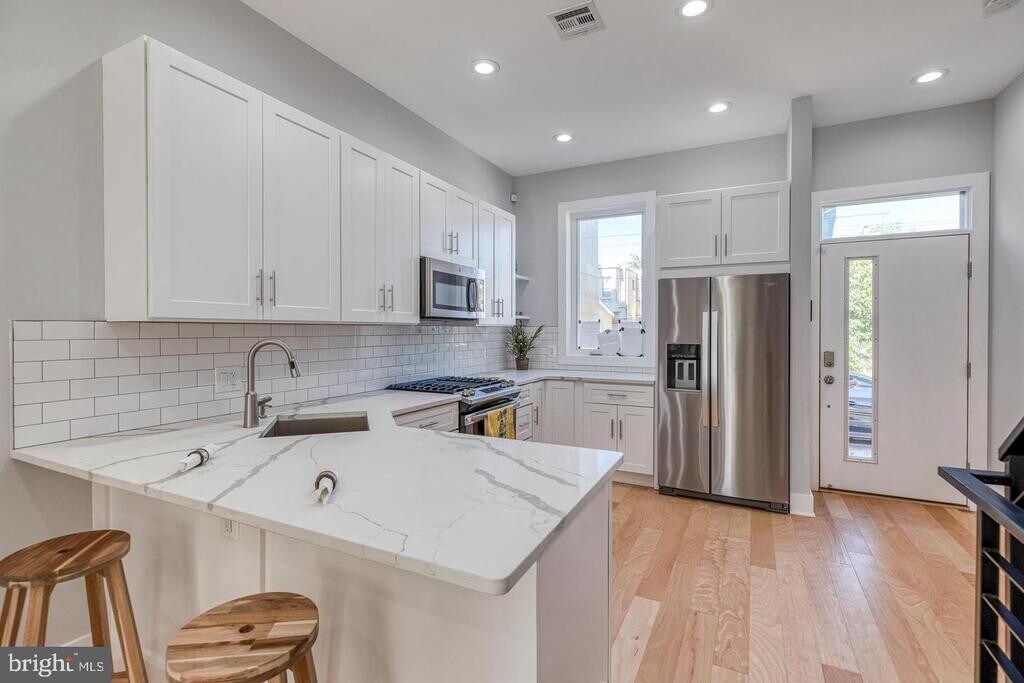Welcome to this modern 3-bedroom, 2.5-bath home in the desirable Grays Ferry neighborhood. This prime location is just a short walk from leading healthcare providers such as CHOP and UPENN, as well as Center City, Graduate Hospital, Rittenhouse Square, Fresh Grocer, Heirloom Market, doggy daycare, Dock Street Brewery, restaurants, bars, shopping, and nearby parks. It also offers convenient access to public transportation and major routes, making commuting and running daily errands easy. 2636 Latona Street perfectly blends modern comfort with everyday convenience. This home is ideal for various lifestyles—whether you are a professional, sharing with roommates, or simply looking for extra space to live, work, and relax. The open-concept main level features a bright, spacious layout, including a contemporary kitchen with sleek white cabinetry, quartz countertops, stainless steel appliances, and convenient counter seating—perfect for casual meals or entertaining. The adjoining dining and living areas provide plenty of space for gatherings, enhanced by large sliding glass doors that lead to a private backyard, ideal for outdoor dining, relaxing, or hosting guests. Upstairs, you'll find two generously sized bedrooms filled with natural light from large windows, as well as a full bathroom and an in-unit Washer & Dryer for added convenience. The entire third floor is dedicated to a private primary suite, complete with a spacious walk-in closet and a modern en-suite bathroom featuring double vanities and a stylish, spa-inspired shower. Additional highlights include high ceilings, hardwood flooring throughout, a fully finished basement with a bathroom—ideal for a home office, gym, or extra living space—and a large private rooftop deck with ample room to unwind and enjoy city views. Pets are welcome with owner approval. Don't miss the opportunity to make this versatile and inviting space your next home!