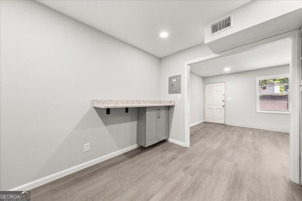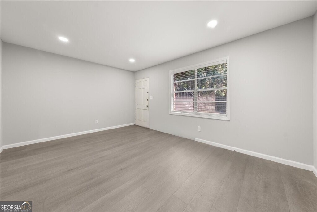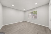 Apartment is just 7 blocks from East Point Marta Station. Property is fully remodel. It will have stainless steel appliances including gas range, french door refrigerater, and a washer and dryer combo in the 2 bedroom 1 bath unit. New gray cabinets with granite counters. Bathroom has tile shower and semi framed glass door. Luxury vinyl flooring. New front and back doors. Can lighting throughout.