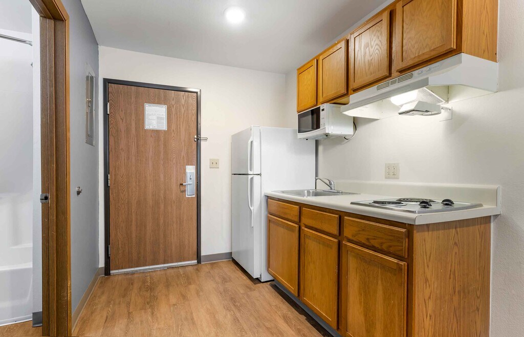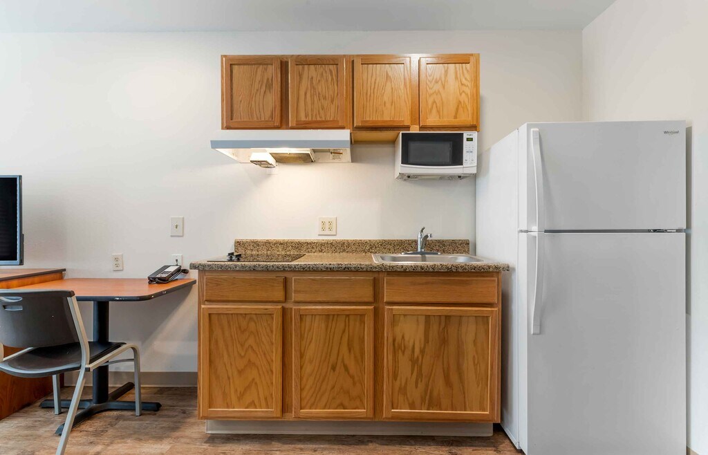 Enjoy a fully furnished studio suite in our hotel at an affordable rate with free wi-fi, free utilities and free premium cable. Each studio suite has a full kitchen with full-size refrigerator, stovetop and microwave, and has a flexible workspace and plenty of storage. All our hotels are pet-friendly and have on-site guest laundry available. Plus, there are no long-term commitments and you can adjust your length of stay to meet your individual needs, subject to applicable property and/or local restrictions. Additional fees may apply. Booking restrictions and taxes apply. Rates and availability are subject to change without notice.