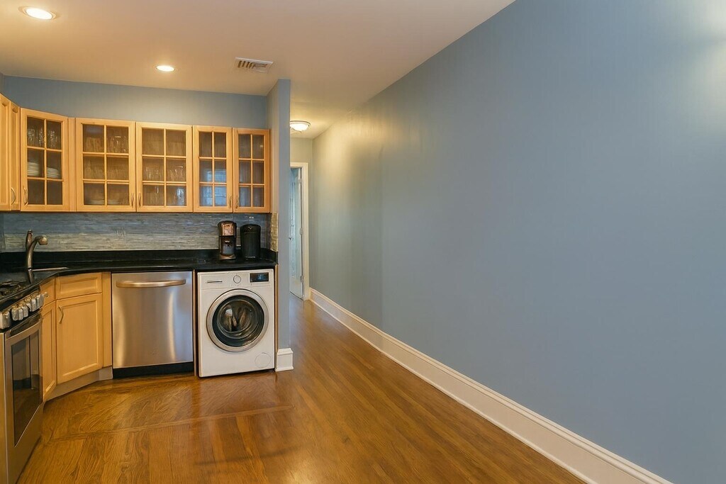 Top-floor, south-facing sunlight-filled one bedroom, one bath condo infused with charm and fitted with modern conveniences. Home features historic touches such as high ceilings, hardwood floors, built-in bookcases, oversized pocket door, decorative fireplace, and tall windows that add warmth and character. Comfort conveniences include an up-dated kitchen with stainless steel appliances and lots of cabinet space, an in-unit washer and dryer combo, renovated bathroom with tub, central air and heating, custom bedroom closet organizer, and basement storage/bike area. Just steps away from Jersey City’s vibrant downtown and Hamilton Park community with trendy restaurants, boutiques, cozy cafes, and easy commuting to the Grove Street PATH station connecting you to NYC and beyond. A wonderful chance to live in a comfortable, centrally located home! Parking available nearby for an additional fee.