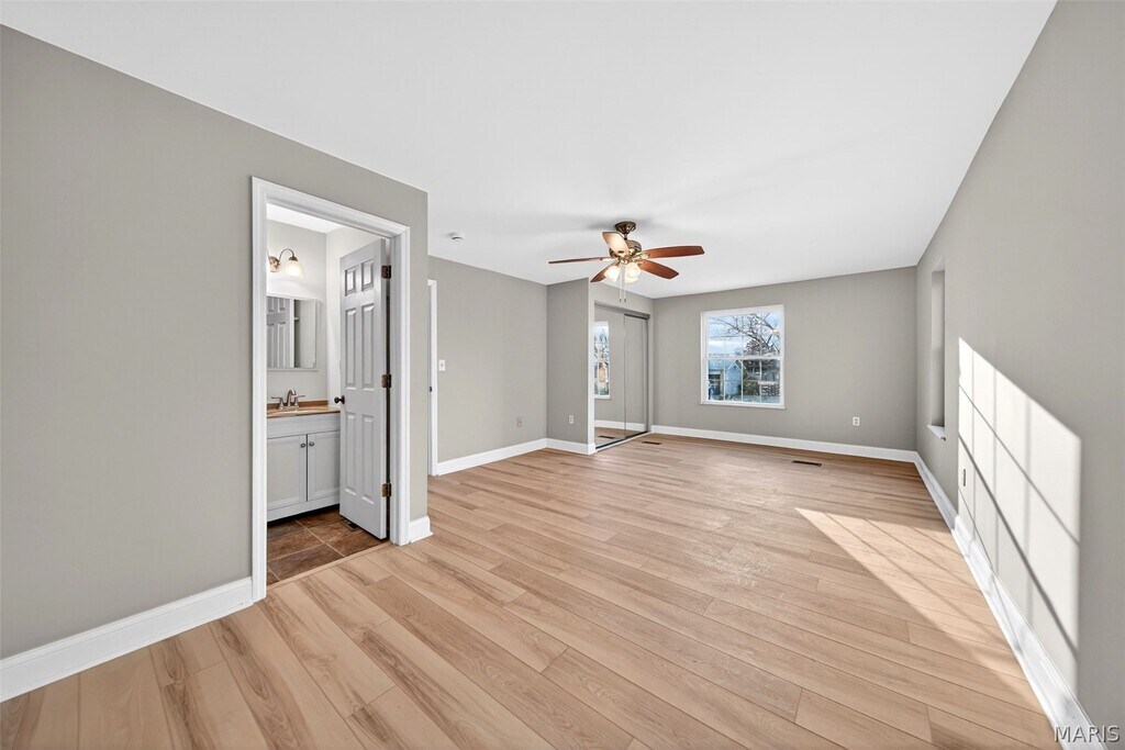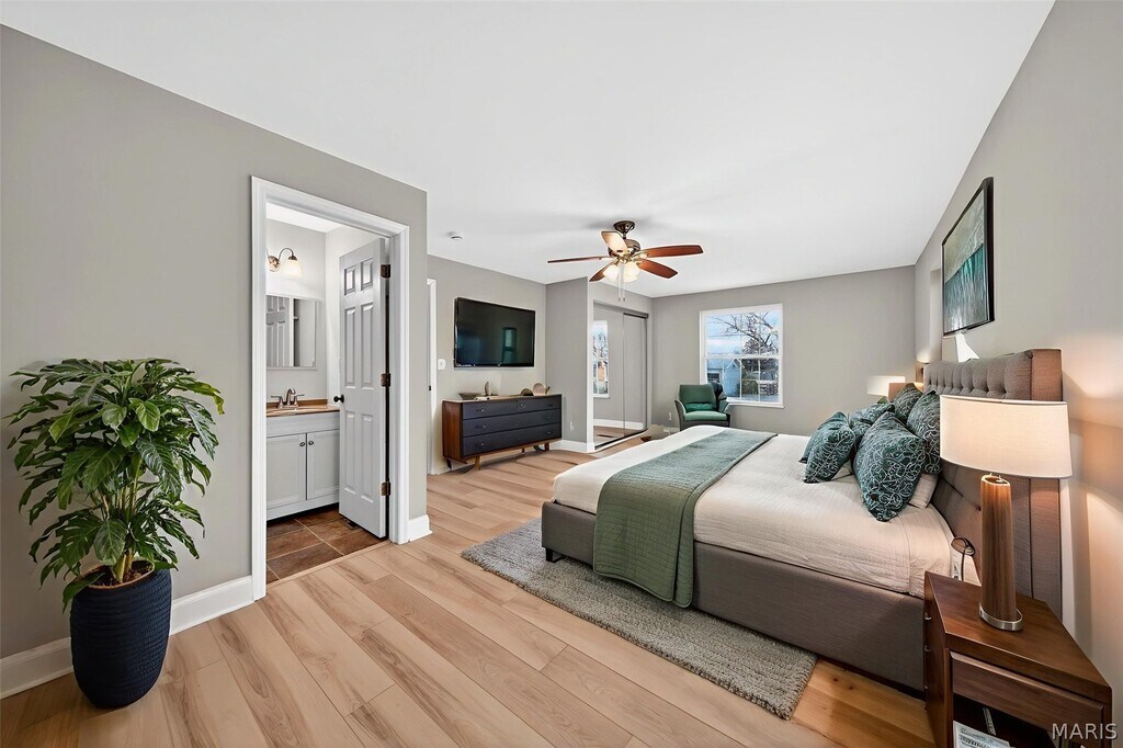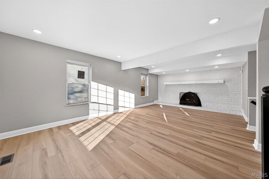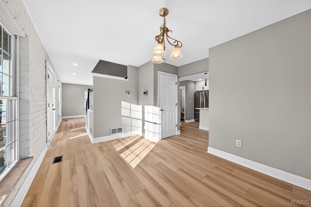 Welcome to this renovated two-story in the heart of Ballwin just minutes from Manchester Road and in Parkway Schools. Enter to neutral paint, recessed lighting, and beautiful vinyl hardwood flooring throughout! Tons of natural light and tons of space to spread out in the spacious living room with quaint wood burning fireplace! Pass the powder room to enter the fully renovated kitchen with custom shaker style cabinets, quartz countertops, tiled backsplash and new stainless steel appliances. Large pantry off the kitchen and dedicated formal dining room makes this circular main floor floorplan perfect for entertaining. Upstairs you have a large master suite with attached full bathroom with walk-in shower. Two other bedrooms and full bathroom complete the upstairs. Basement is partially finished with half bath and walks out to private yard. LARGE unfinished space with laundry gives tons of space for storage! Attached two-car garage and brand new driveway and front walk complete the home. 12 month lease minimum, available immediately!