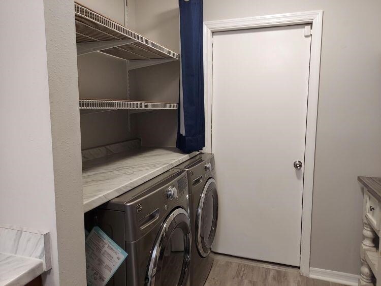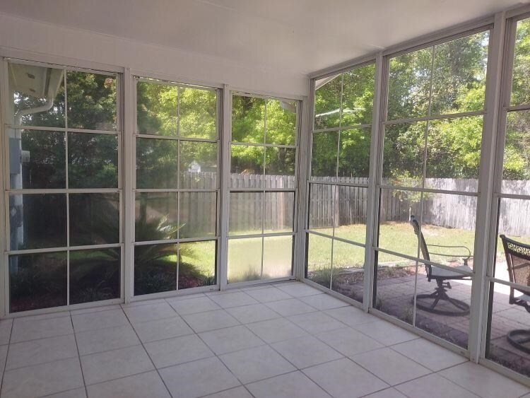 Don't wait long to check out this cute home in St. Augustine Shores. Split floor plan with vinyl plank flooring throughout. Primary bedroom with updated bathroom & big walk in closet. Second bedroom with good size closet. Updated second bathroom just steps away. Kitchen features include updated countertops, cabinets and stainless steel appliances. Laundry area with washer, dryer and countertop for folding clothes. Extra area for storage. Enjoy relaxing on your enclosed back porch with views of a spacious backyard. Outdoor patio with plenty of room for entertaining, cook outs & a fire pit.
