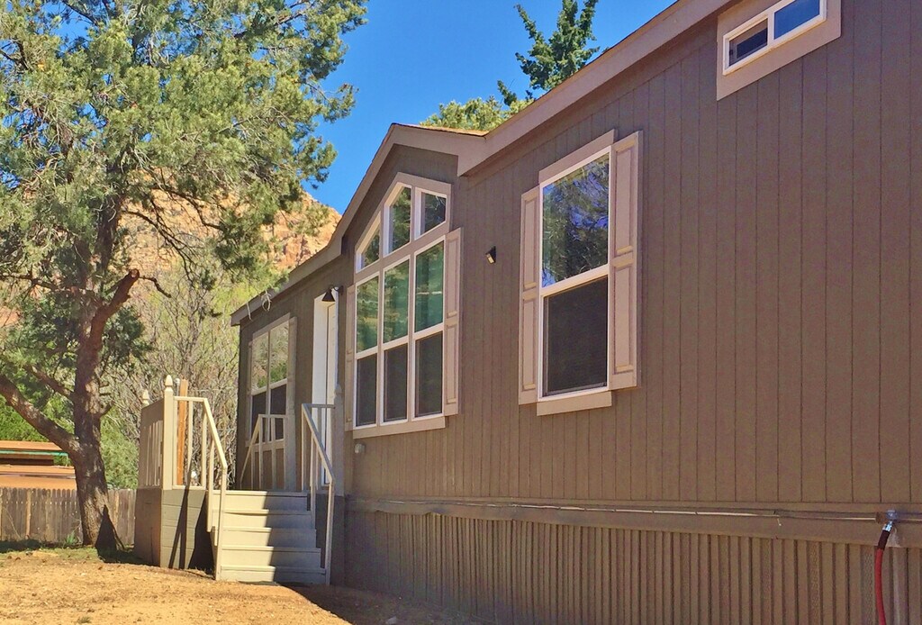 THIS MANUFACTURED HOME LOCATED IN CONVENIENT WEST SEDONA FEATURES LOTS OF LIVING SPACE! OPEN FLOOR PLAN WITH LIVING ROOM AND FAMILY ROOM. LARGE DECK WITH THUNDER MOUNTAIN VIEWS. DREAM KITCHEN WITH PANTRY AND BREAKFAST BAR. MASTER SUITE WITH WALK IN CLOSET AND A GREAT BATHROOM WITH DOUBLE SINKS, VANITY AND AMPLE STORAGE. SPLIT FLOOR PLAN WITH TWO MORE BEDROOMS AND ANOTHER FULL BATH. THERE IS ALSO A NICE LAUNDRY ROOM WITH FULL SIZE APPLIANCES AND SINK. DETACHED GARAGE. NO PETS. PLEASE CALL TO SCHEDULE AN AGENT SHOWING. CURRENT TENANT IN RESIDENCE. PLEASE DO NOT DISTURB TENANTS.