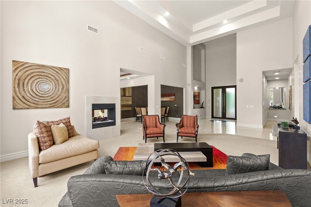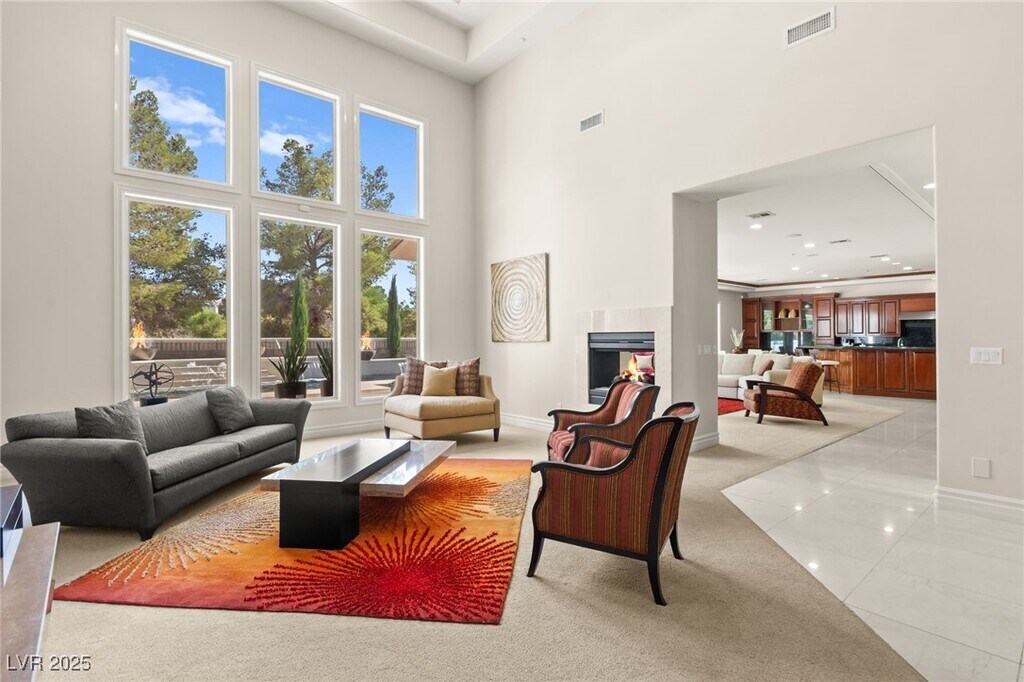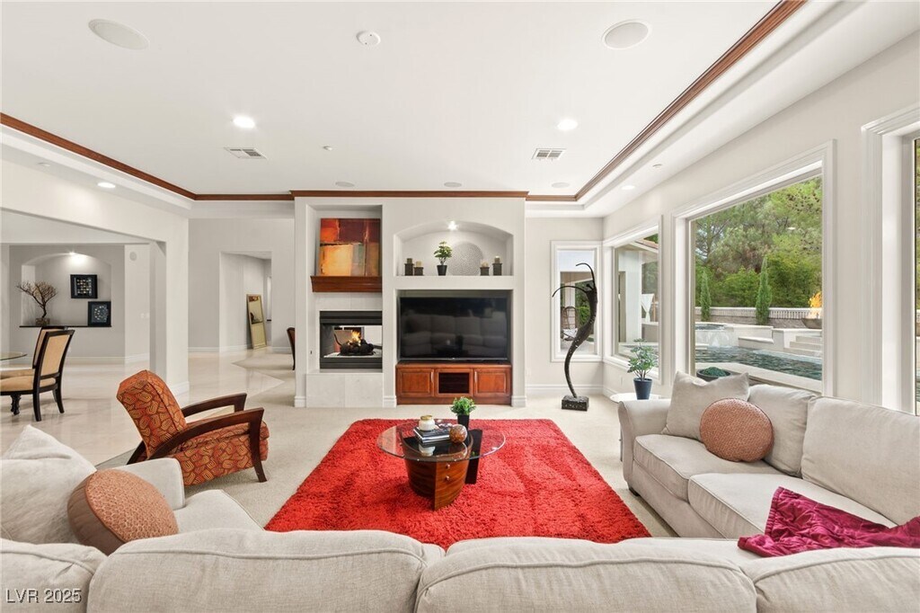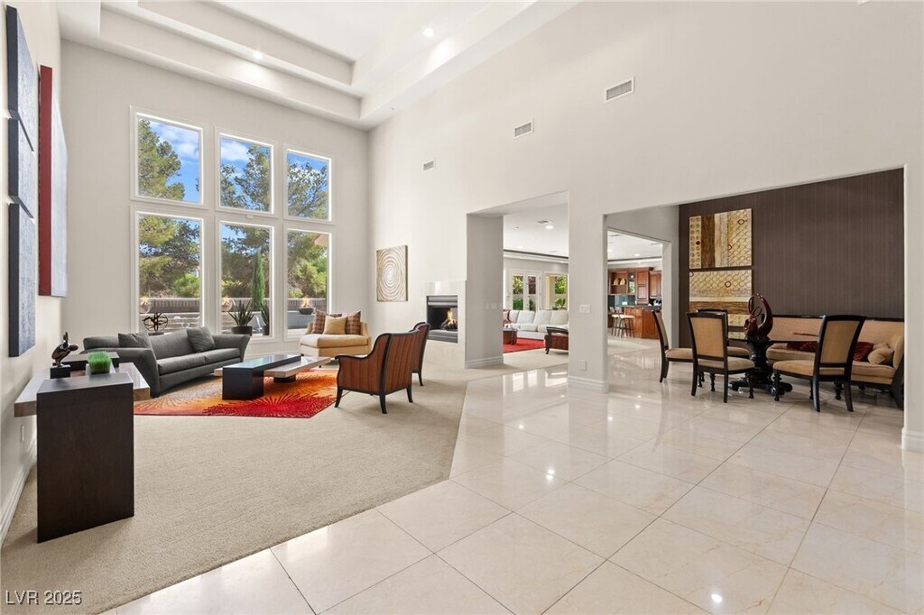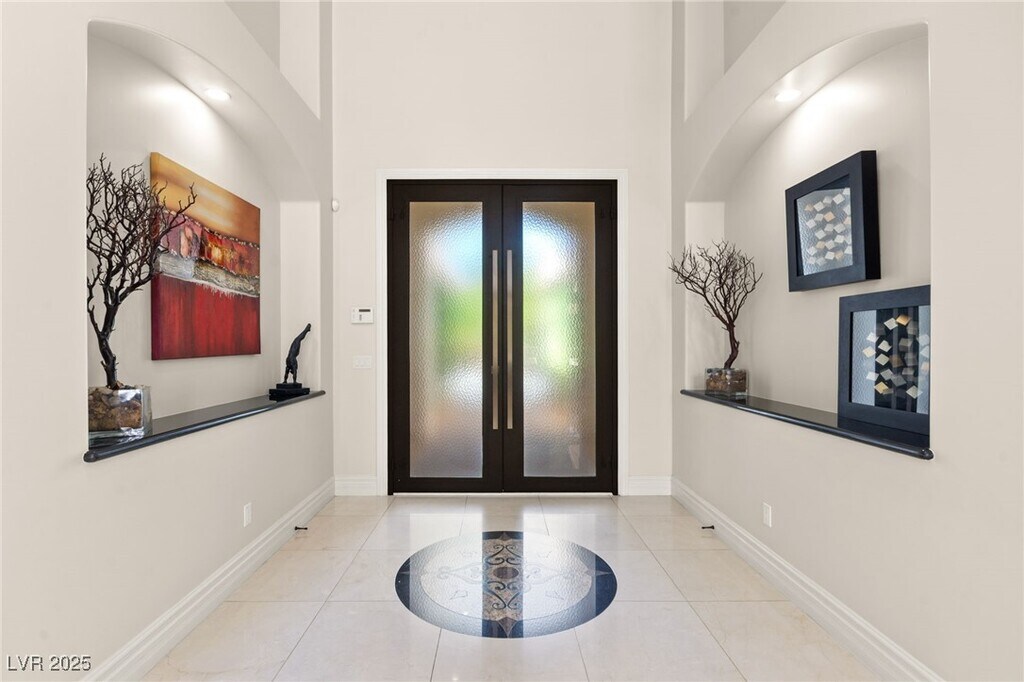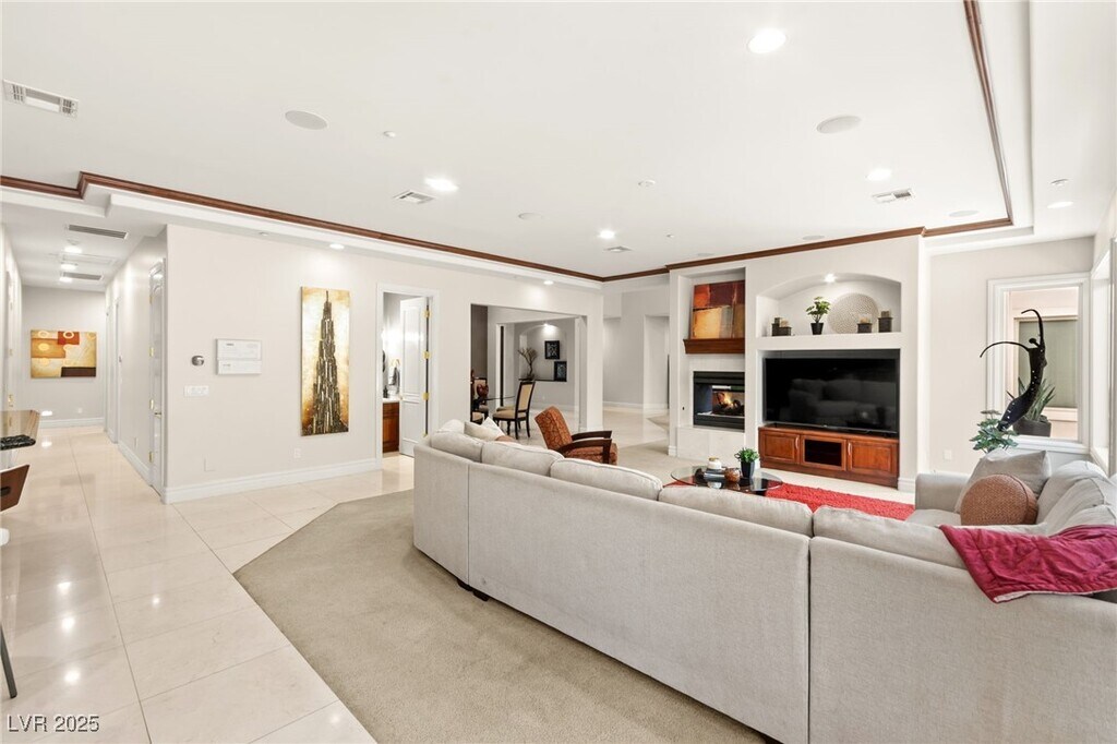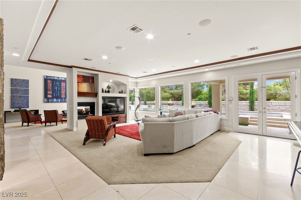 EXQUISITE CUSTOM ESTATE SINGLE STORY IN GUARD-GATED TERRACINA SOARING 10'-20' CEILINGS W/COFFERED DETAILS DESIGNER 22 TRAVERTINE & HARDWOOD FLOORS ELEGANT CROWN MOLDING & 8' SOLID CORE DOORS THROUGHOUT GRAND IRON & GLASS ENTRY GOURMET KITCHEN W/CHERRY WOOD CABINETRY, SLAB GRANITE, DUAL SUBZERO FRIDGES, DOUBLE DISHWASHERS, 6-BURNER COOKTOP, WALL OVENS, WARMING DRAWER & WALK-IN PANTRY OPEN GREAT ROOM W/BUILT-IN MEDIA, FIREPLACE & SURROUND SOUND LUXE PRIMARY SUITE W/FIREPLACE, SPA BATH, STEAM SHOWER, JETTED TUB & 2 CUSTOM WALK-IN CLOSETS EXPANSIVE BASEMENT THEATER W/WET BAR, FULL BATH, WINE CELLAR & ROOM-TO ENTERTAIN LUSHLY LANDSCAPED YARD W/COVERED PATIO, PET FRIENDLY FLOORPLAN, BUILT-IN BBQ & NO HOMES BEHIND-TOTAL PRIVACY TRULY A MUST-SEE CUSTOM MASTERPIECE IN ONE OF HENDERSON'S FINEST COMMUNITIES!!!"
