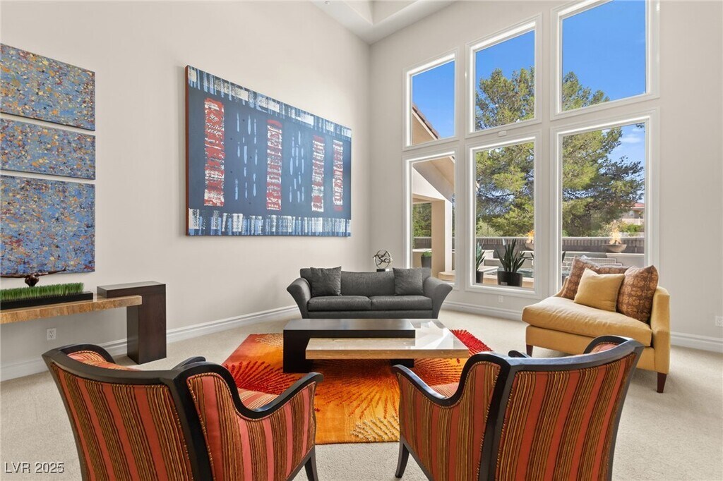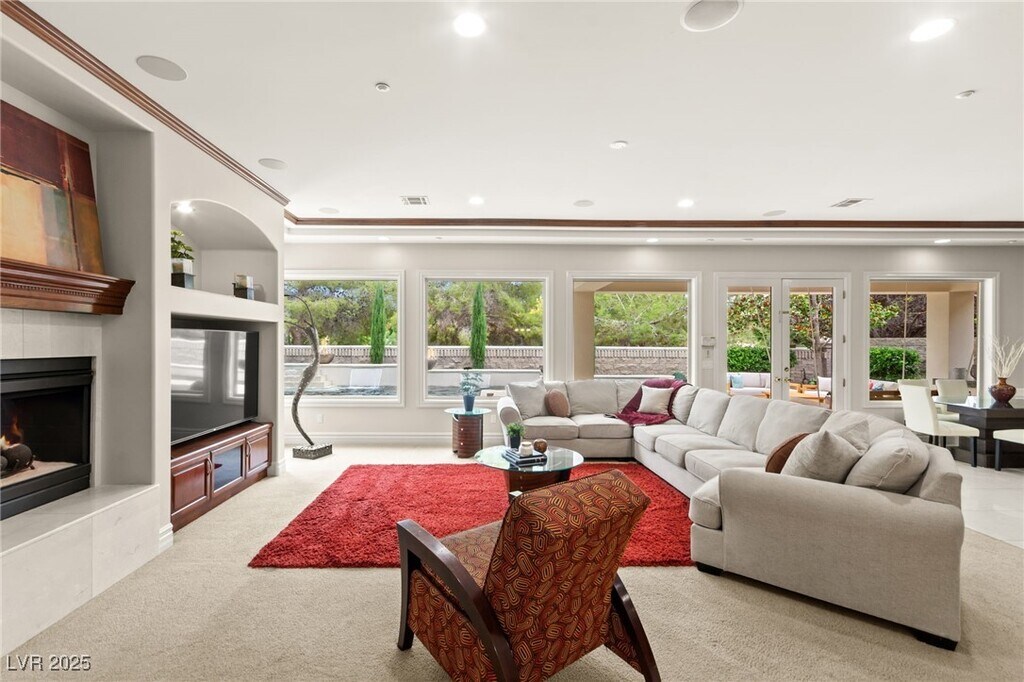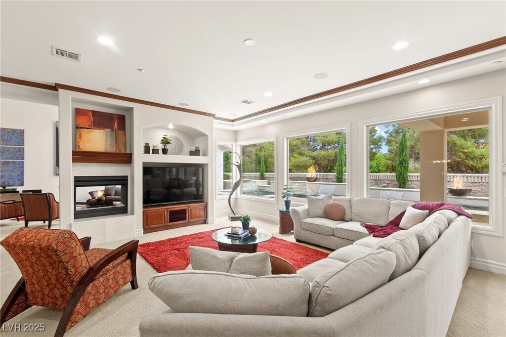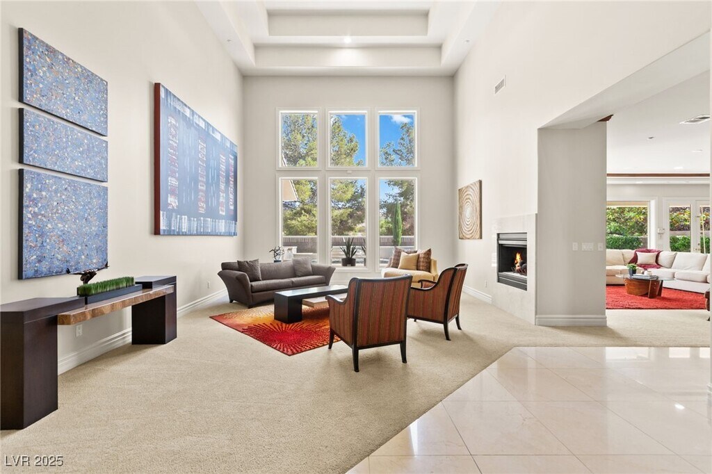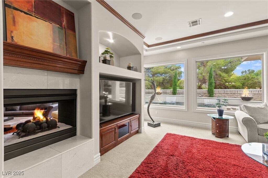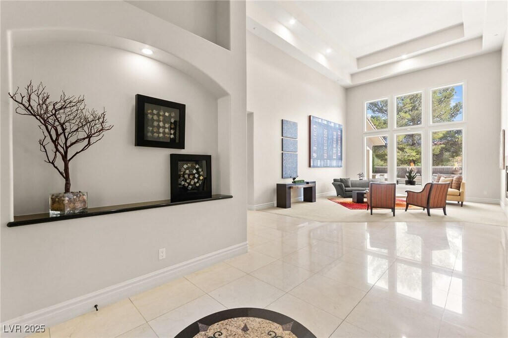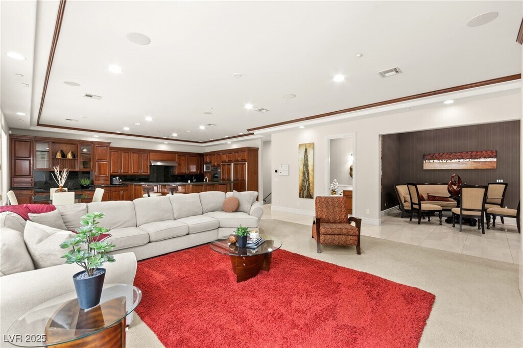 EXQUISITE CUSTOM ESTATE SINGLE STORY IN GUARD-GATED TERRACINA SOARING 10'-20' CEILINGS W/COFFERED DETAILS DESIGNER 22 TRAVERTINE & HARDWOOD FLOORS ELEGANT CROWN MOLDING & 8' SOLID CORE DOORS THROUGHOUT GRAND IRON & GLASS ENTRY GOURMET KITCHEN W/CHERRY WOOD CABINETRY, SLAB GRANITE, DUAL SUBZERO FRIDGES, DOUBLE DISHWASHERS, 6-BURNER COOKTOP, WALL OVENS, WARMING DRAWER & WALK-IN PANTRY OPEN GREAT ROOM W/BUILT-IN MEDIA, FIREPLACE & SURROUND SOUND LUXE PRIMARY SUITE W/FIREPLACE, SPA BATH, STEAM SHOWER, JETTED TUB & 2 CUSTOM WALK-IN CLOSETS EXPANSIVE BASEMENT THEATER W/WET BAR, FULL BATH, WINE CELLAR & ROOM-TO ENTERTAIN LUSHLY LANDSCAPED YARD W/COVERED PATIO, PET FRIENDLY FLOORPLAN, BUILT-IN BBQ & NO HOMES BEHIND-TOTAL PRIVACY TRULY A MUST-SEE CUSTOM MASTERPIECE IN ONE OF HENDERSON'S FINEST COMMUNITIES!!!"