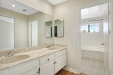 This move-in-ready, two-story duplex is nestled on a quiet, tree-lined street and offers the perfect blend of comfort, functionality, and privacy. Designed for both entertaining and everyday living, the home features three spacious upstairs bedrooms and a dedicated laundry room equipped with a newer washer and dryer.The expansive primary suite serves as a true retreat, highlighted by soaring, sloped ceilings and direct access to a private front balcony. The ensuite bathroom includes a large soaking tub, double vanity, and a generously sized entry closet. Two additional well-sized bedrooms with closets and a full hallway bathroom complete the upper level.On the main level, a dramatic skylight provides abundant natural light and leads to a large storage closet, a convenient half bath, and an attached two-car garage. The updated kitchen is the heart of the home, featuring Corian countertops, ample cabinet space, and a large dedicated pantry. The open-concept dining and family rooms flow seamlessly from the kitchen, creating an ideal setting for gatherings.The fully fenced, exceptionally private backyard has been thoughtfully updated with drought-tolerant landscaping and offers ample space for outdoor entertaining or relaxing.Ideally located near shopping, dining, hiking trails, schools, and with easy freeway access, this well-maintained property is ready for its next tenants. Welcome home.