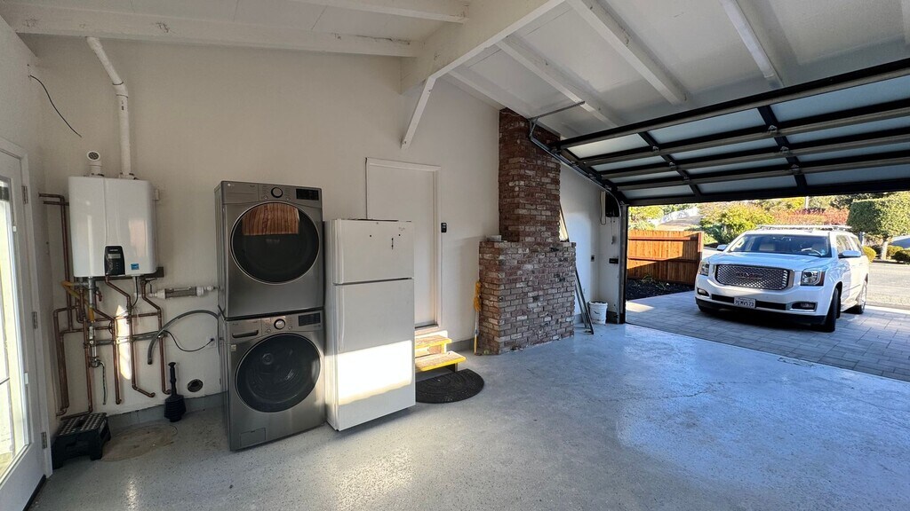 Available now unfurnished or furnished*, month to month or long term lease. Warm and inviting mid-century single level home in Carmel's Mission Fields neighborhood. Situated on a corner lot, this bright and spacious 3 bedroom 2 bath home is ready now. Dimmable low volt lighting with warm ambiance throughout. Large private yard built for entertaining or relaxing with deck, outdoor fireplace, paver pathways all around the home and property. This charming move-in ready home with beautiful oak floors and large windows highlight the home's natural lighting, and a cozy fireplace, Reverse Osmosis Drinking water filter at sink and plumbed to fridge ice maker. Outdoor shower and dog washing station. Off street parking, privacy, large fully finished garage. Included appliances; Stackable LG washer/dryer, gas range, Refrigerator, Dishwasher. Central Heat and fireplace with gas start. *Furnished will require additional fee Carmel School District