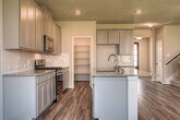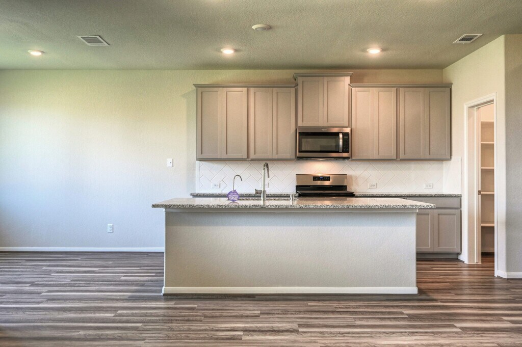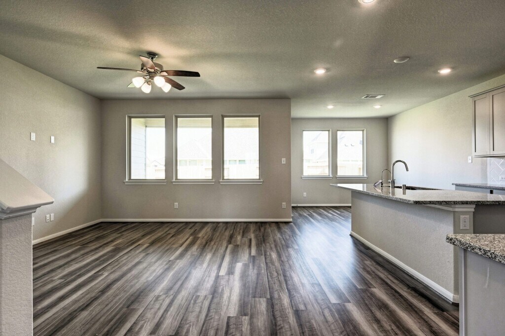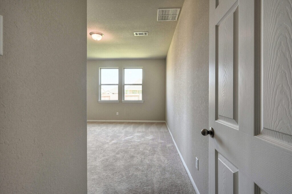 This stunning brick and stone home sits on a corner lot,boasting front and back covered porches. Upon entry,you're greeted by an 8 ft door and oyster oak vinyl flooring throughout the first floor. The kitchen features Whirlpool stainless steel appliances,white sparkle granite countertops,42" grey cabinets,and an externally ventilated microwave. The master bedroom is conveniently located downstairs with beautiful white Carrera tiles in the bathrooms and Moen chrome plumbing fixtures. Upstairs you'll find a spacious game room and secondary bedrooms. The home also comes with a fridge included and will be available starting May 1st,2026. Photos were taken when the home was vacant. MLS# 58451328