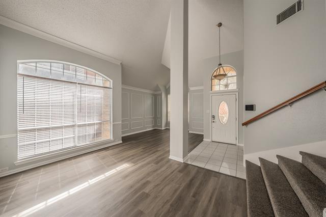 Exceptional property, which offers a perfect blend of luxury and functional design.As you step into the home, the soaring vaulted ceilings immediately enhance the entry with an abundance of height and natural light. The interior features custom trim throughout and premium luxury vinyl plank flooring. The home is designed with a spacious open-concept layout, complemented by granite countertops in the kitchen and all bathrooms. The kitchen is a chef’s dream, equipped with a double oven and a built-in wine cooler. The primary suite is conveniently located on the main floor, featuring a master bathroom with a jetted tub for relaxation. Upstairs, you will find a dedicated media room and a private office complete with built-in shelving. The outdoor living space is equally impressive, boasting a large covered patio with a built-in island and a dedicated gas line for a grill. Allowing a small pet under 30lbs. Very close to Arlington entertainment and major highways.