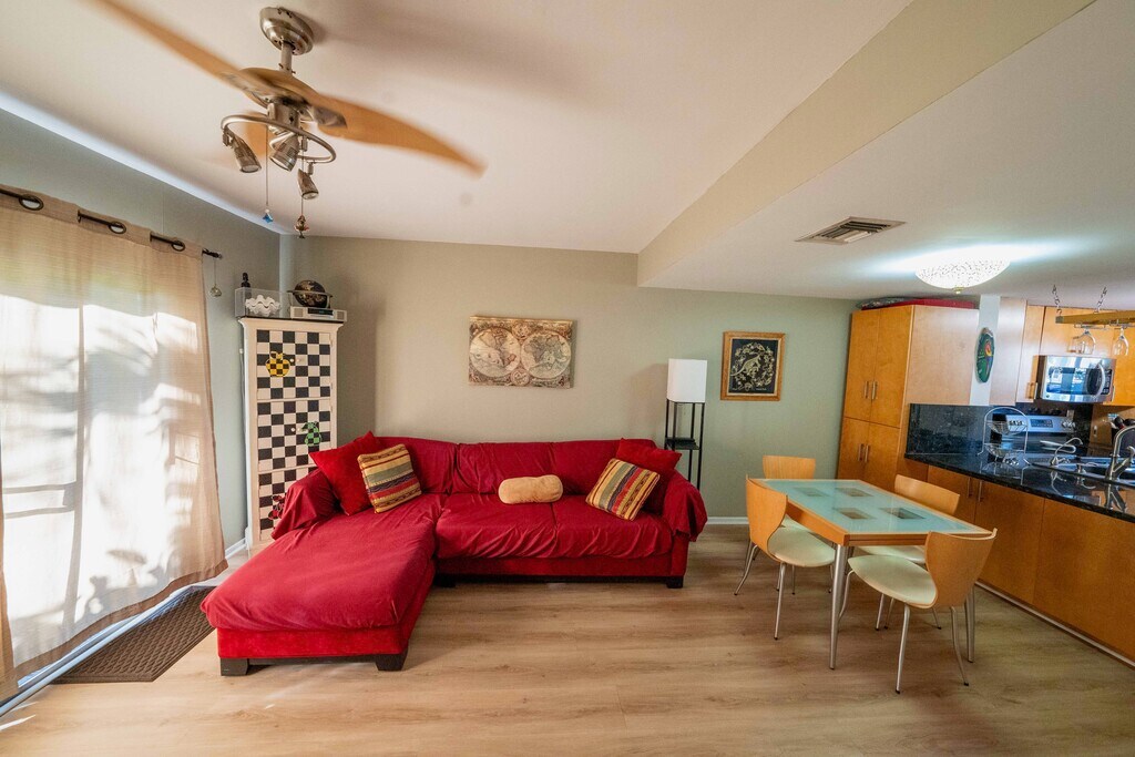 Single Occupancy Only. East of US1 Share this 2 / 2.5 furnished townhome with the owner that is home only a month and a half a year. You will have the townhome to yourself about 90% of the year. Owner is very clean and a world traveler. This waterfront community is upscale, safe, quiet and is walking distance to the beach. One-bedroom 11x13 feet with two large closets and ensuite bathroom is available to rent for single occupancy. Bedroom is furnished with a queen bed. Home is furnished including fully stocked kitchen. The townhouse is close to the beach, shopping, and public golf course. The unit is equipped with washer and dryer, spacious master suite, with its own bathroom, outdoor BBQ grill, and back patio. Lovely coconut tree lined swimming pool and boat docks to enjoy the sunset and local happy hour with neighbors. The community is located on a canal close to the Hillsboro inlet with no fixed bridges, boat dockage available for rent separately (not part of this rental). You must have a good credit score, no criminal history, and board approval to rent. Rent includes water, excludes electricity and internet. First, last and- security deposit required, along with online application fee, credit and history check to move in. Homeowners Association (HOA) application is $150- you will be required to complete the application and meet with an HOA representative in person before moving in.