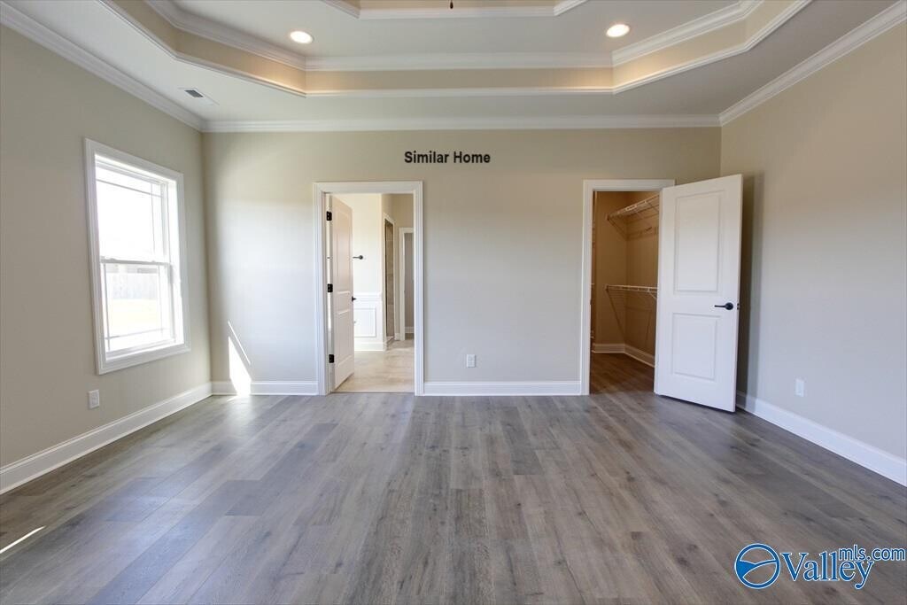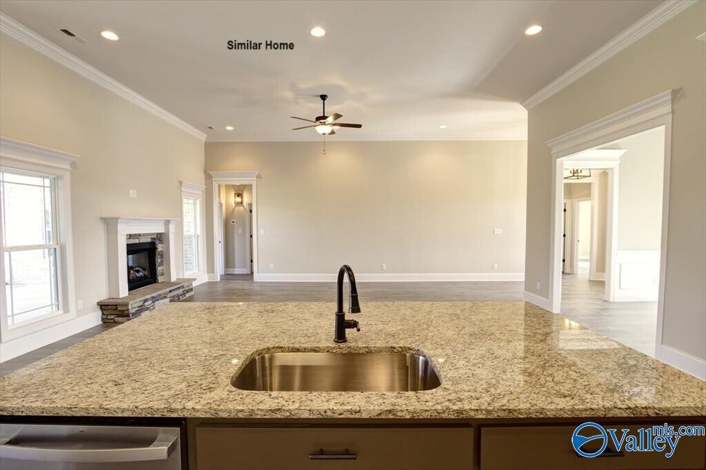 Almost new - fresh paint - open plan w/ 4 bedrooms,3 baths,dining room & sunroom. 3 car garage! Family Room w/12' ceiling,gas FP,Rev-wood floor,recessed lighting,ceiling fan & ext. trim; Formal Dining Room w/12' coffered ceiling,ext. trim & Rev-wood floor; Open kitchen with 12' ceiling,granite,custom cabinetry,gas cooktop,wall oven,walk-in pantry,Rev-wood flooring,back splash,& large island bar seating; Master bedroom w/double trey ceiling,recessed lights,Rev-wood flooring & ceiling fan. Glam bath w/11' ceiling,tile shower with corner seat & shelves,& double granite vanities; Sunroom w/12' ceiling & Rev-wood