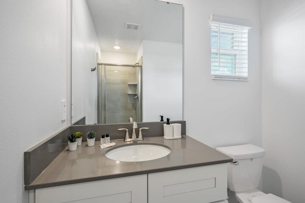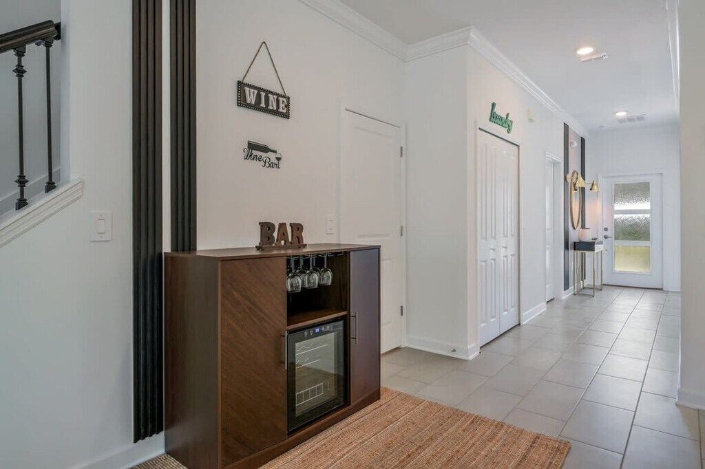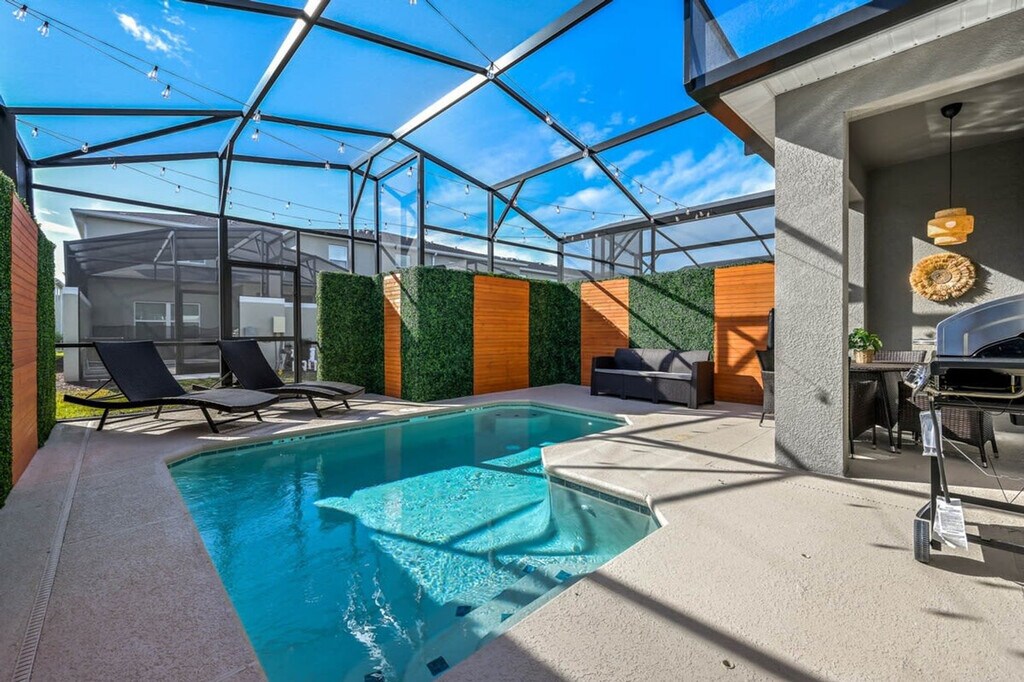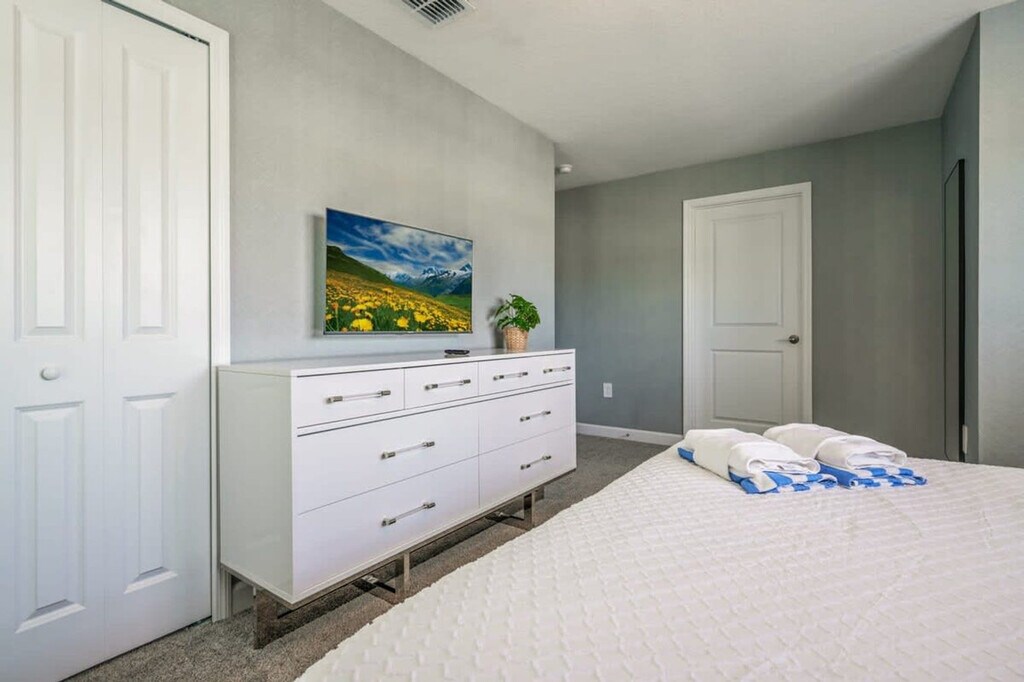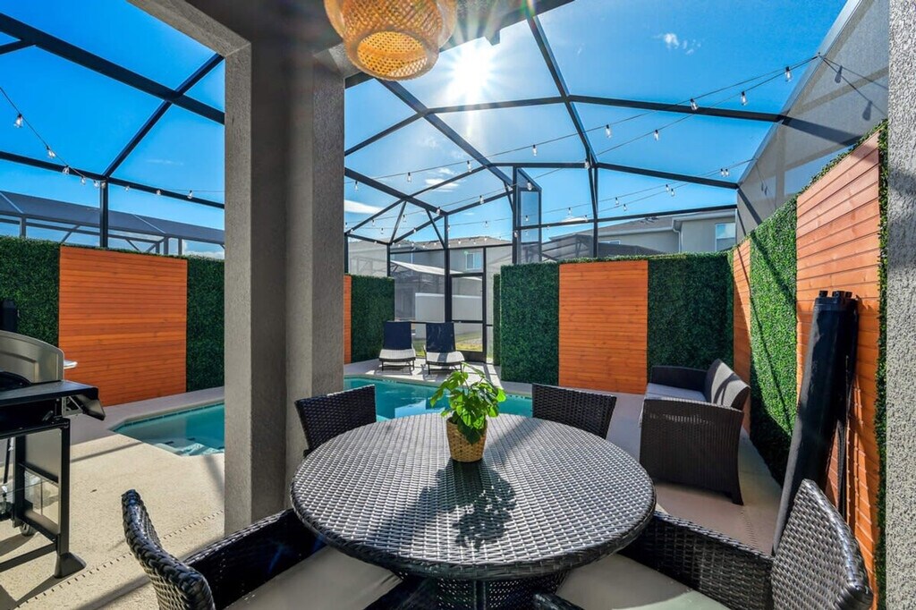 Immerse yourself in luxury and fun at this splendid 5-bedroom townhome. Marvel at the enchanting Frozen and Harry Potter-themed bedrooms and indulge in endless joy at the amazing private pool area. The pool is not just a pool, it's a beautiful oasis where you'll have a blast. Dive in for a refreshing swim or unwind by the poolside. Plus, the resort's clubhouse offers a plethora of recreational activities. For added excitement, explore the nearby Disney Theme Parks, stores, and restaurants, all just minutes away. Create magical memories with your loved ones that will last a lifetime. Step into the lap of luxury at this exquisitely decorated villa designed to accommodate up to 12 guests. As you enter, you'll be greeted by a spacious living room seamlessly connected to the dining area and fully equipped kitchen, creating an ideal entertainment space. The kitchen boasts all the essential amenities for cooking and dining convenience. Outside, prepare to be enchanted by the amazing private heatable pool area—a true oasis of fun and beauty. This property features 5 bedrooms spanning two floors. On the first floor, a charming bedroom with a queen bed and a Frozen-themed bedroom with one double bed and one single bed share a well-appointed bathroom. Upstairs, indulge in the luxury of two king suites and a Harry Potter-themed bedroom featuring one double bed and one single bed, complete with its private bathroom. In addition to the splendid bedrooms and entertainment spaces, guests can enjoy complimentary amenities such as free Wi-Fi, convenient parking, and a dedicated laundry area furnished with a washer and dryer. A thoughtful welcome package awaits, providing basic bathroom and kitchen supplies for your comfort. Heating the pool is a paid service and there is also a fee charged to use the barbecue grill. Storey Lake Resort has the perfect location just 10 minutes from all major attractions and theme parks in Orlando, including Walt Disney World, Universal Resort, and Sea World. You will find fantastic resort amenities for the whole family to enjoy with a tiki bar, a resort-style pool with slides and lazy river, sports court, mini-golf, kayak, and fitness center. There are two clubs inside the property, one of them with a themed pirate pool that kids will love, just walking distance from the house. Located just off Osceola Parkway, the resort has easy access to restaurants, shopping, and supermarkets, all within a 5-minute drive. Quiet hours are between 22:00 and 8:00. Replenishment of bathroom and kitchen amenities is the guest's responsibility. [SI]