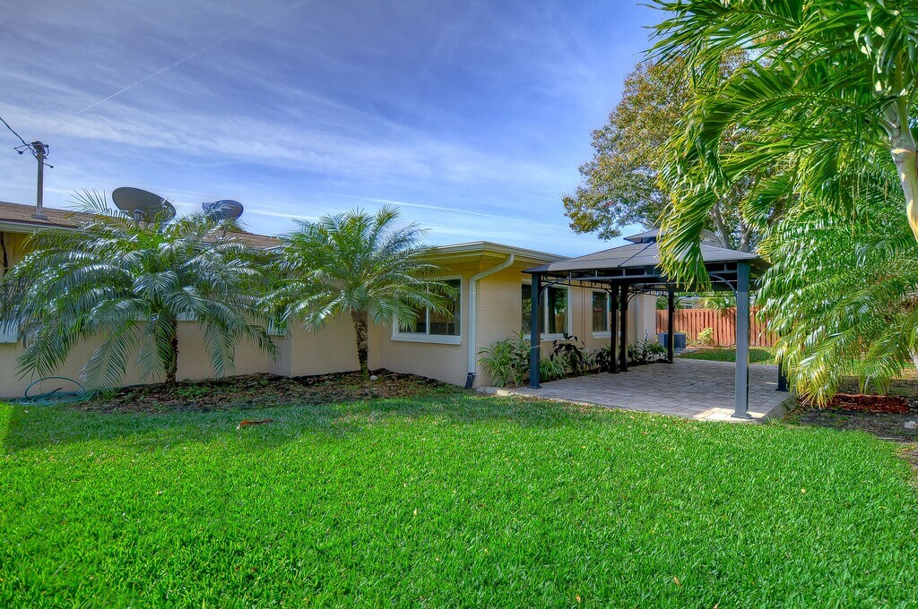 This immaculately updated 3 bedroom 2 bath home is perfect for family living and entertaining with an open layout and bonus living spaces. The front door opens to the great room which offers plenty of living space, and leads into a bonus room that can be used as a formal dining space or family room. You'll love the custom kitchen which offers state-of-the-art cabinetry, quartz countertops, stainless steel appliances, an over-sized island with plenty of storage, and LED lighting under and over the cabinets with remote to choose your color preference. The master suite features a walk in closet with built-in storage, an en-suite with elegant finishes and a sleek stand-up shower. The fenced in back yard is picture-perfect and invites you to enjoy lush landscaping and outdoor gathering space with a pavered lanai and a double gazebo for added comfort and shade. Convenience is key! Great convenient location: 5 minutes from beautiful Maximo Park, I-275 access, a short 10minute drive to downtown St Petersburg & a quick 10 minute drive to the gorgeous Pass-a-Grille beaches. This home wont last long!