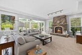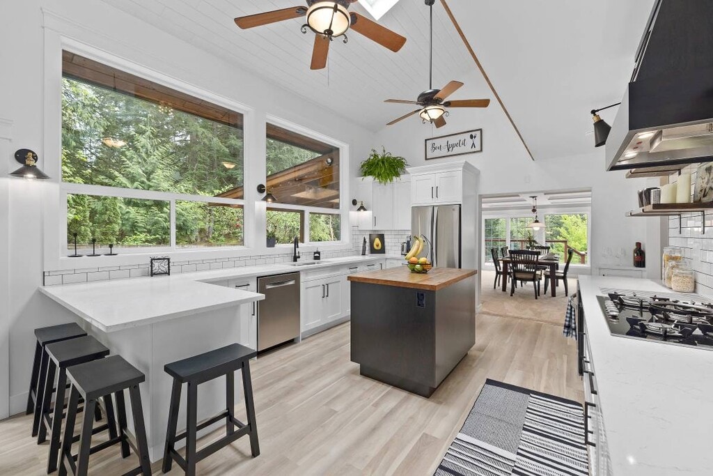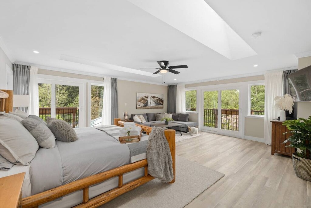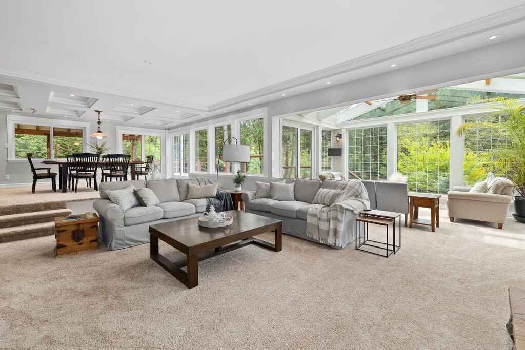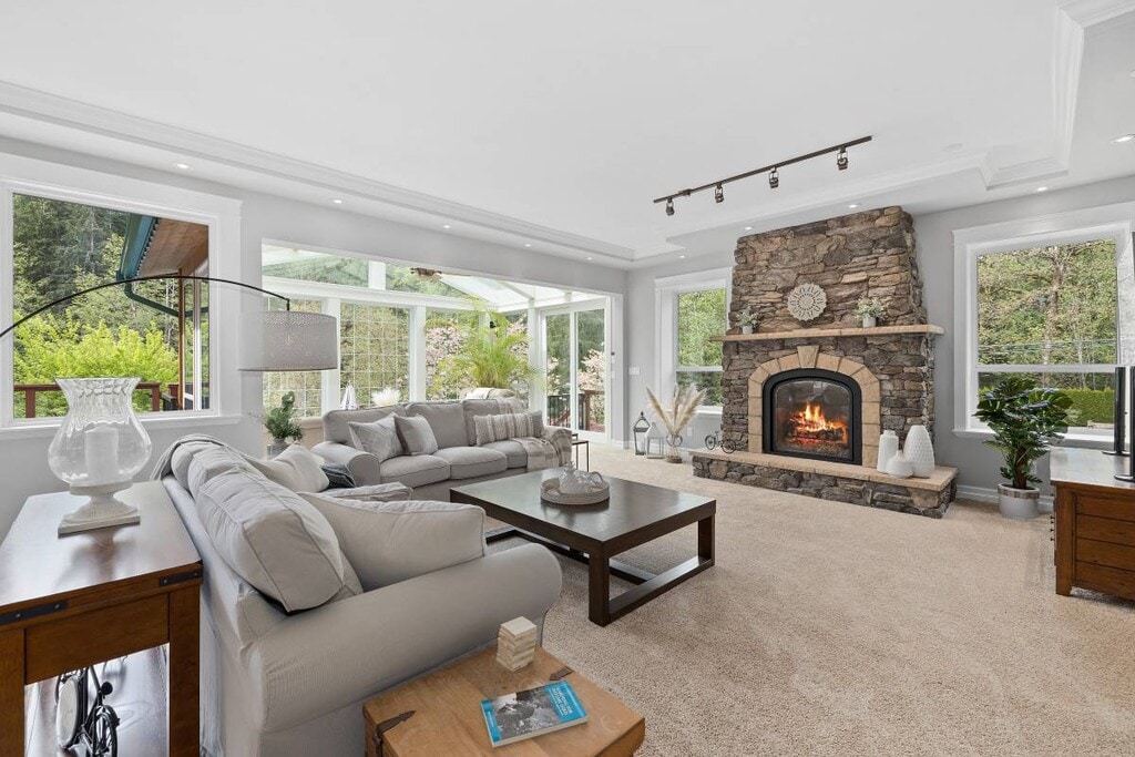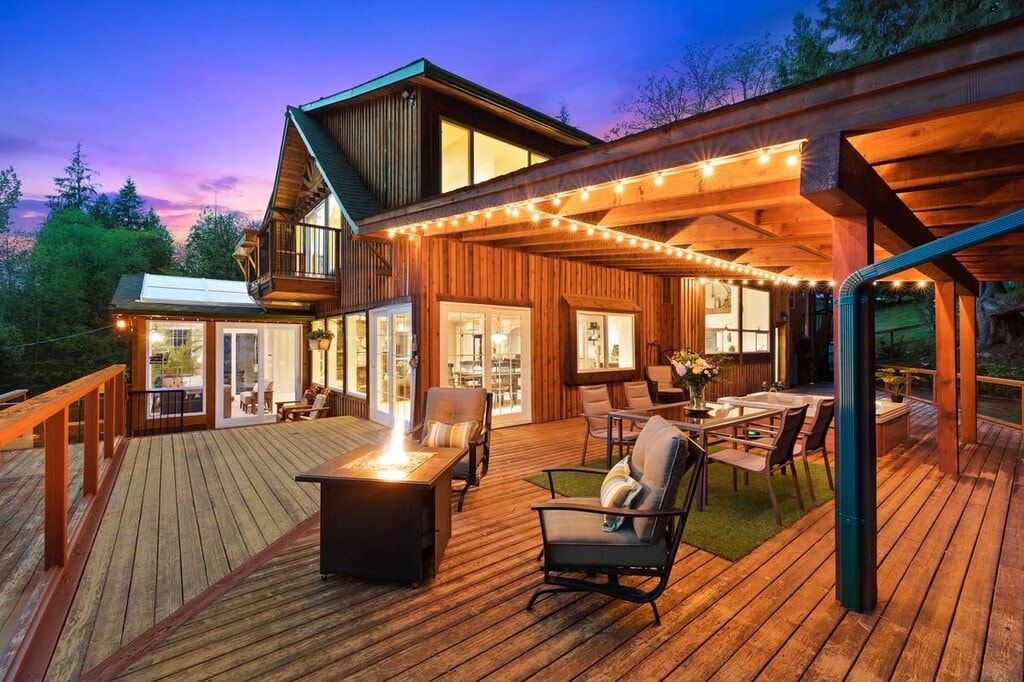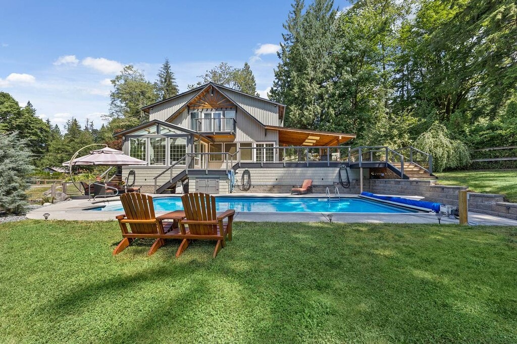 Exquisite fully furnished Whonnock home offering elegance, privacy, and comfort in a peaceful countryside setting—just bring your clothes and move right in. This immaculate 3-bedroom (one on the main), 2.5-bath home features vaulted ceilings, a sunken living room with large windows and gas fireplace, high-end flooring, and a wrap-around covered deck overlooking beautifully landscaped grounds. Enjoy an in-ground pool for summer relaxation, a double garage with ample visitor parking, and an electric entry gate for privacy and security. Fully furnished with linens, dishes, kitchen essentials, private laundry, and storage. All utilities, Wi-Fi, and garbage pickup included. Separate one-bedroom suite on property. Flexible lease; no pets or smoking permitted.