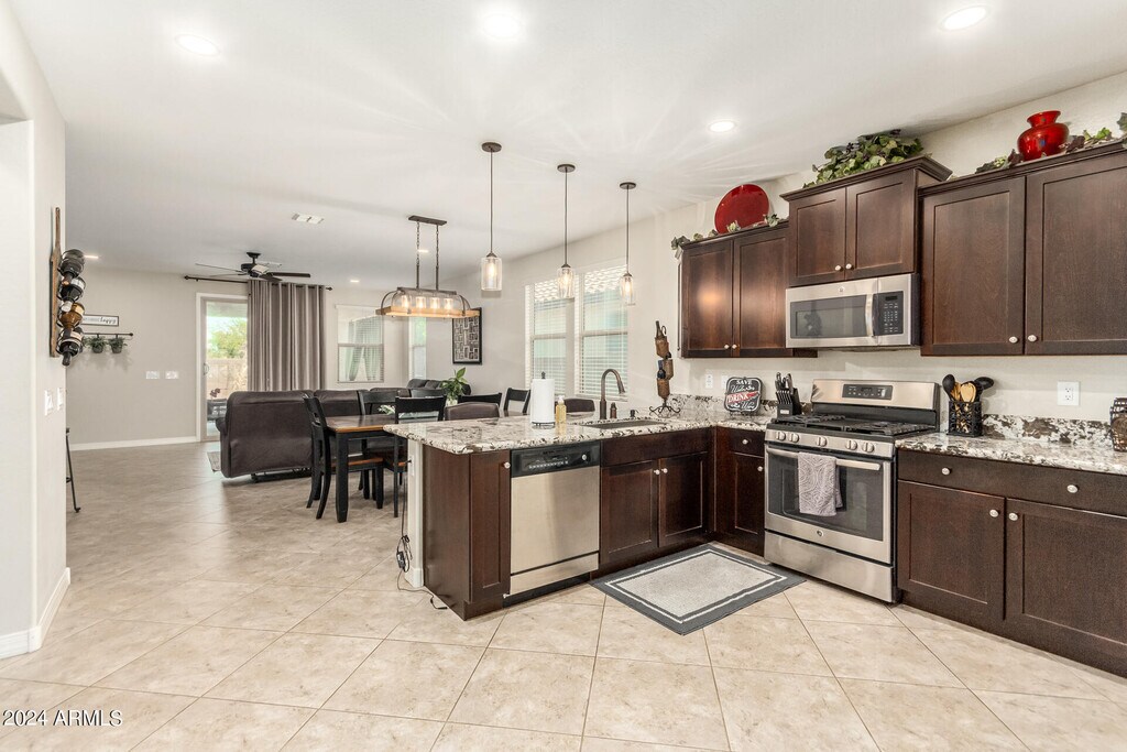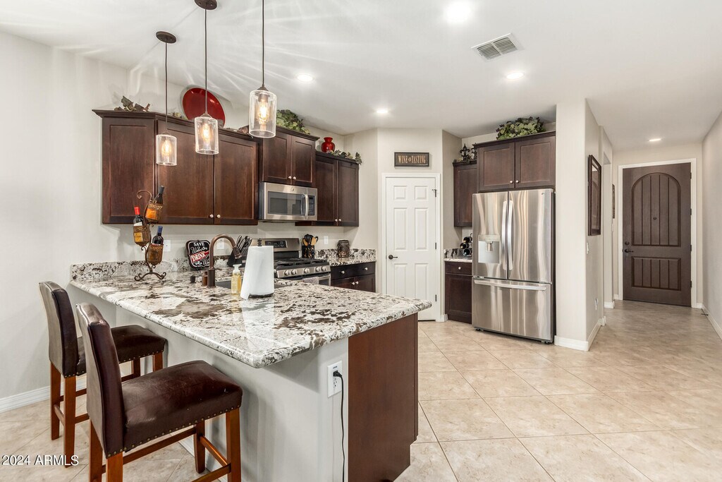 Welcome to this delightful single-story residence nestled in the coveted Rancho Cabrillo community. This charming home features 3 bedrooms plus a den,offering ample space and versatility for modern living. Step into the heart of the home where an inviting eat-in kitchen awaits,complete with exquisite granite countertops and a center island that opens to the expansive family room. The kitchen is perfect for entertaining or everyday dining,complemented by tile flooring that enhances both style and practicality. Located conveniently near hiking trails,shopping centers,restaurants,and schools. This home ensures both convenience and community. With easy access to the Loop 303,residents enjoy seamless connectivity to nearby attractions such as Lake Pleasant Regional Park and the popular Paloma Park in North Peoria.