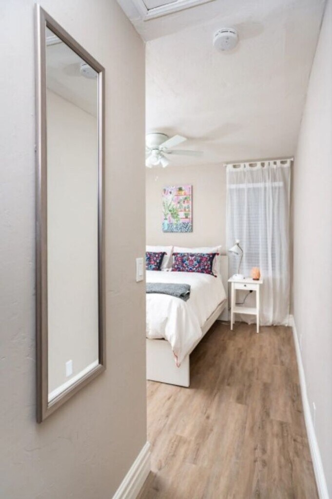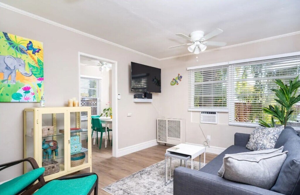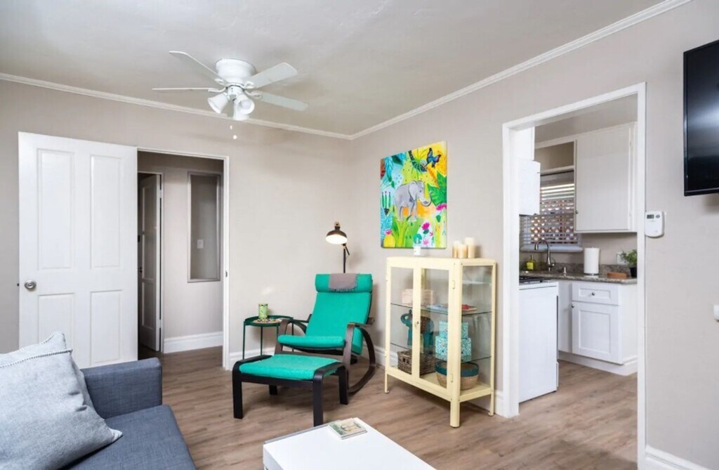 ADORABLE, seldom available cottage with washer/dryer, firepit/patio furniture, barbeque and one off street parking spot. Located in the historic Old Town, San Diego across the street from several restaurants, shops, and entertainment. Bus, Coaster, and train just around the corner. Minutes to downtown, airport, Balboa Park, Zoo, and 5 and 8 freeways. Everything has been upgraded with wood laminate flooring throughout, granite countertops in the kitchen, custom tile in the bathroom, and your own washer/dryer. This won't last long. Get ready to enjoy your own yard!