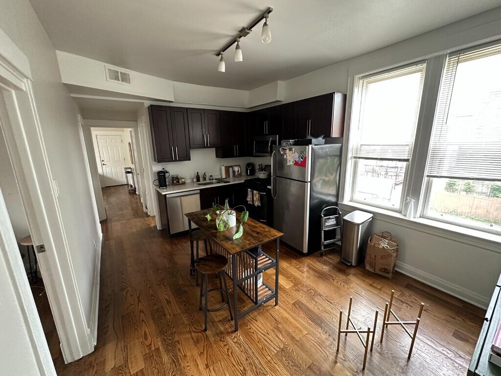 Excellent apartment in a beautiful, vintage grey stone building. Recent Rehab. Back Porch. Back patio. Bike Room. Storage area. AC. Dishwasher. Broker-Owned Property Great building in HOT West Town neighborhood. Walk to the Park, Buck Town, Wicker Park, and Ukrainian Village!