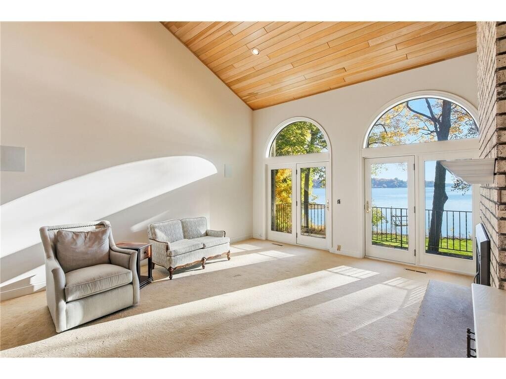 Stunning 1-acre lot on Lake Minnetonka. Indulge in lakeside luxury at this stunning home, where the expansive first-floor master suite captivates with breathtaking lake vistas. A chef-inspired gourmet kitchen sets the stage for culinary creations, while private balconies span the entire rear of the home, framing lush, meticulously landscaped grounds and sweeping panoramic views of serene Carman Bay. Retreat to the walk-out lower level, featuring three generous additional bedrooms, a warm and inviting family room anchored by a crackling fireplace, and a convenient kitchenette perfect for effortless al fresco gatherings by the water. Nestled in an unbeatable location, this property offers seamless access to vibrant dining and entertainment in both charming downtown Wayzata and Excelsior, with the scenic Dakota Rail Trail just a leisurely stroll or quick bike ride away—your gateway to endless outdoor adventures.