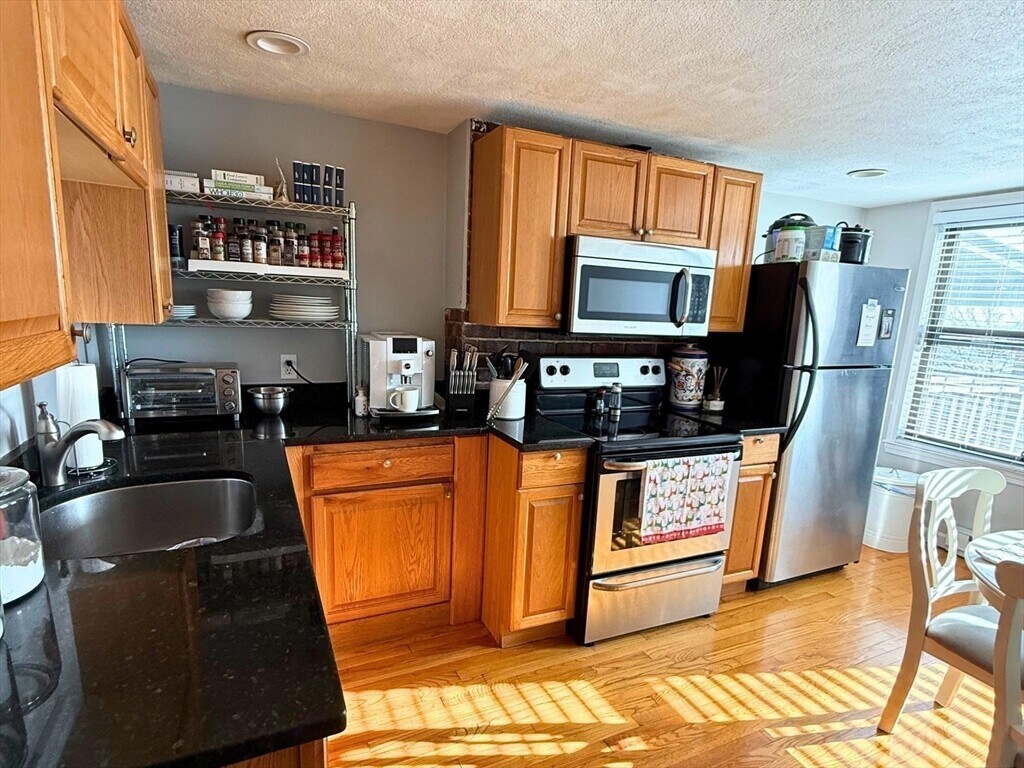 Lease break! Top floor Eagle Hill home full of character and charm! A vaulted living room features exposed brick and a cozy window seat with room for a desk. Other highlights include hardwood floors and recessed lighting throughout the unit,a split bedroom layout that works well for roommates,and a spacious eat-in kitchen with granite countertops and stainless steel appliances. The bathroom features an updated vanity and tile floor. Enjoy the convenience of free common laundry in the basement and access to a large shared backyard outdoor space to enjoy in warmer months. Easy access to public transit,the airport and all that East Boston has to offer! MLS# 73504406