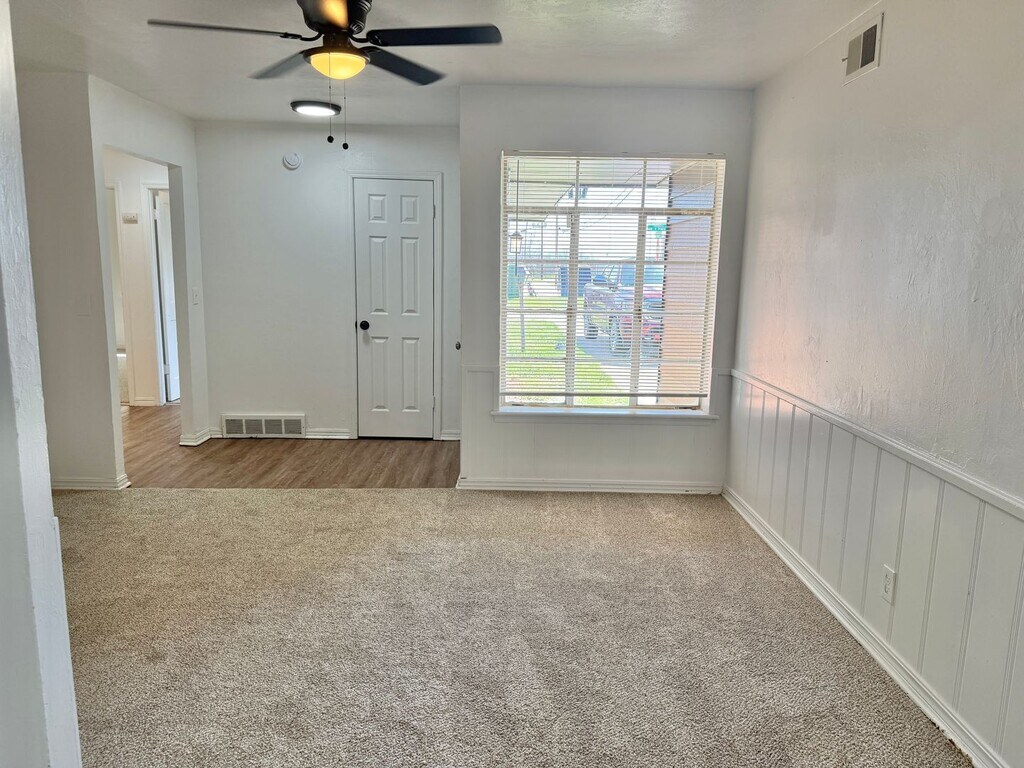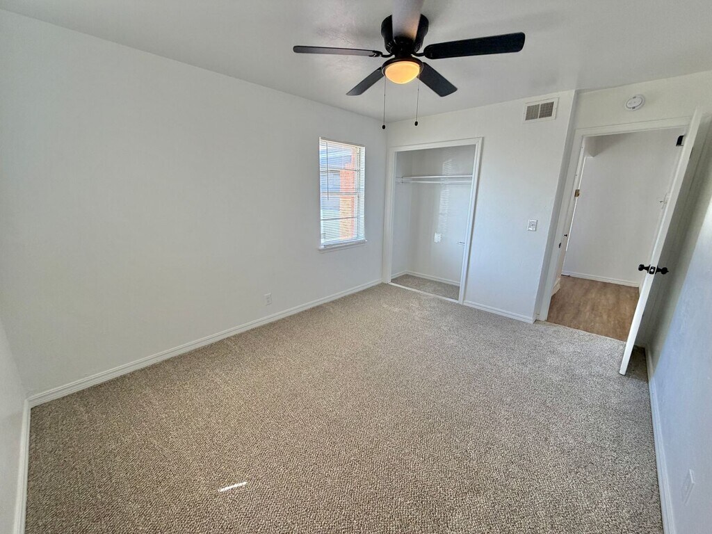 Fresh Fresh Fresh, newly renovated 3 bedroom house with huge master walk in closet, perfect for all those clothes and shoes. Step inside the house an notice all brand new high end carpet and fresh hard floors in the kitchen. bright white color scheme and one car garage. This is one you want to tour. Location is easy access to I-35 to get you anywhere you want to go fast. 550 Min credit must make 2.5x Rent 1245 security deposit $25 per month per pet No restricted dog breeds, no cats