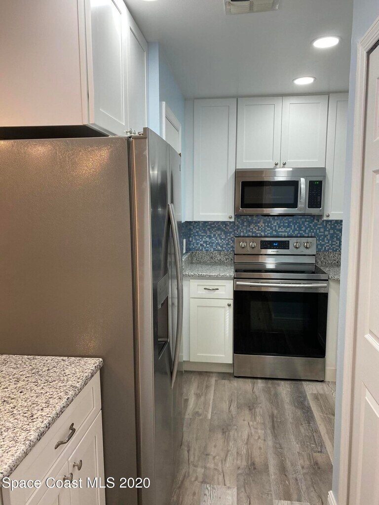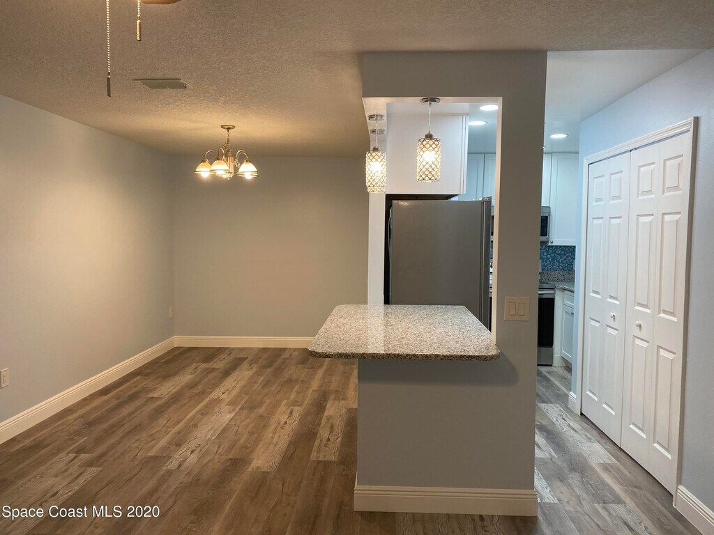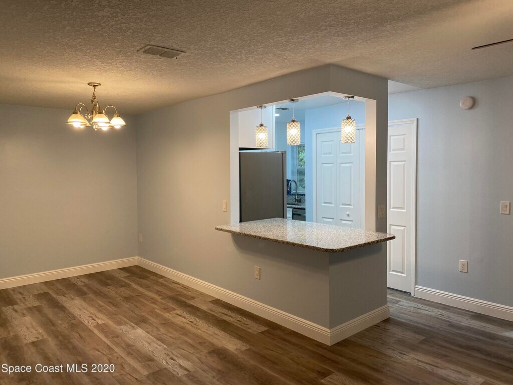Completed renovated unit,like new. Upstairs 2 bedroom 2 bath condo on Central Merritt Island. Open floor plan with sliding glass doors that lead to screened in balcony. New kitchen cabinets and stainless steel appliances. Breakfast bar with granite counter tops. Newer flooring throughout. Master ensuite has walk in shower and walk in closet. Community includes pool,play ground and racquetball court. Owner will consider a small pet. Minutes from the beach,Port Canaveral. shopping,restaurants,Space Center and only 40 minutes to Orlando airport. Call for an appointment today! Tenant will be required to carry renters insurance.