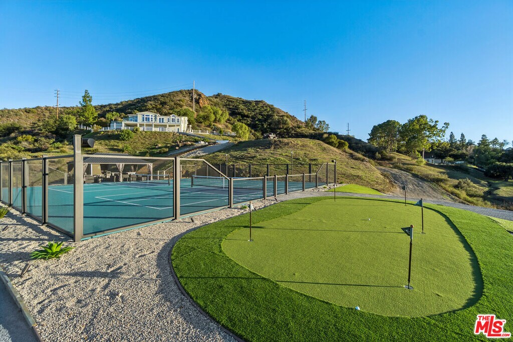 Escape to the pinnacle of tranquility in this exceptional gated Malibu estate, offering complete privacy, prestige, and unobstructed panoramic mountain vistas. This fully renovated 5,066 sq. ft. residential compound features 7 bedrooms, 4 bathrooms, and a private office for seamless remote work all curated with ultra-luxurious modern furnishings and brand-new premium appliances.A long private driveway sets the tone for exclusivity as you enter a world of elevated California living. Inside, every detail has been thoughtfully designed from the fully equipped state-of-the-art gym to the open-style theater perfect for entertainment and screenings. Outside, the resort-level amenities include 2 pickleball courts, a 5-hole putting green, a golf cart, an outdoor cabana with guest bathrooms. Expansive hill and mountain views frame every corner of the property. Ideal for Pickleball tournaments, filming, production, or a serene retreat. Location offers both convenience and connectivity absolute privacy while remaining just minutes from beaches and highway access. Nearby lifestyle highlights include Sherman Country Club, Little Beach House Malibu, local horse trails, Foxfield Riding School, Zuma Falls, Newton Canyon Falls, El Matador State Beach, and Zuma Beach. Canyon Ranch Film Location provides access for professional productions, along with the Shalom Institute Camp & Conference Center for family activities. A rare opportunity to experience the pinnacle of Malibu luxury where breathtaking nature, elite amenities, and complete serenity come together in one extraordinary residential haven. MLS# 25618543