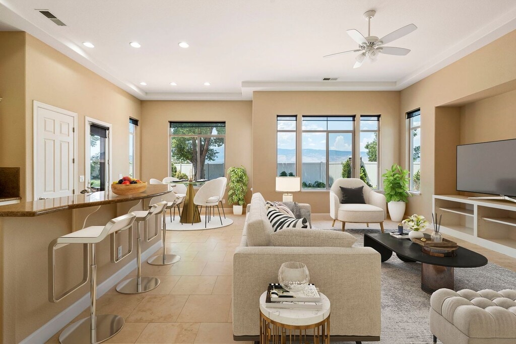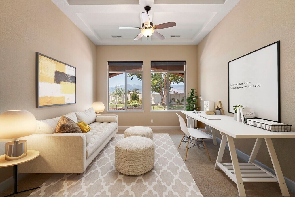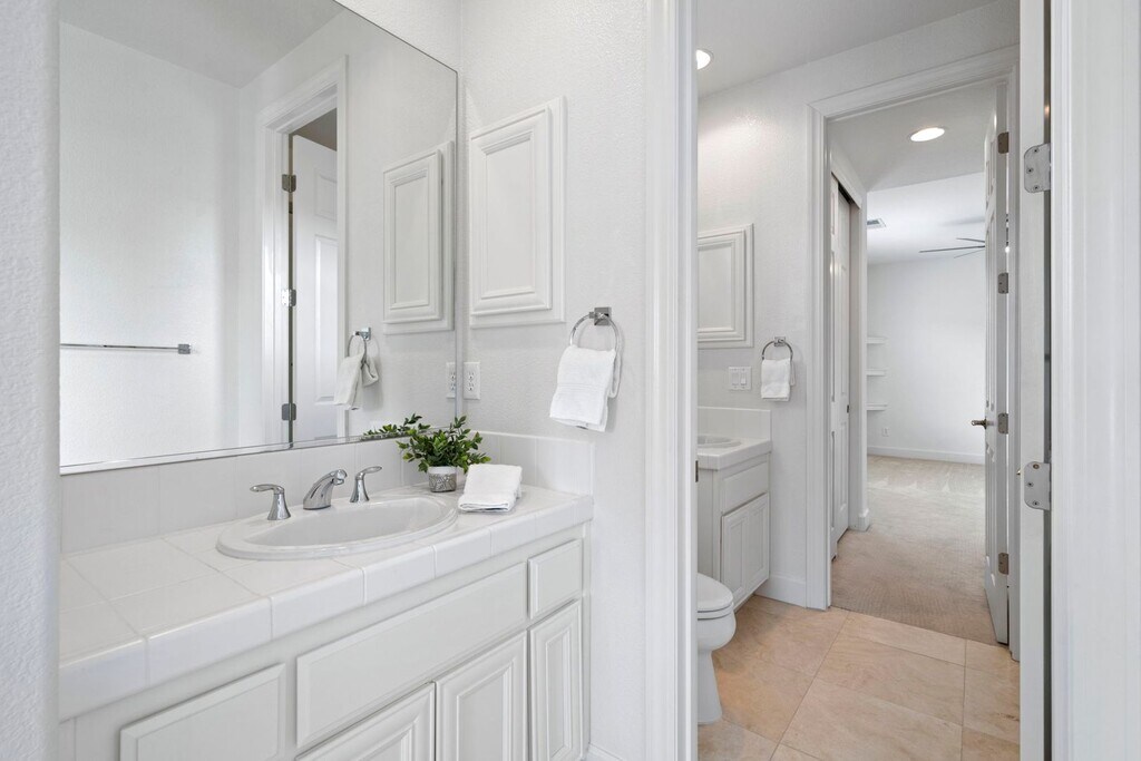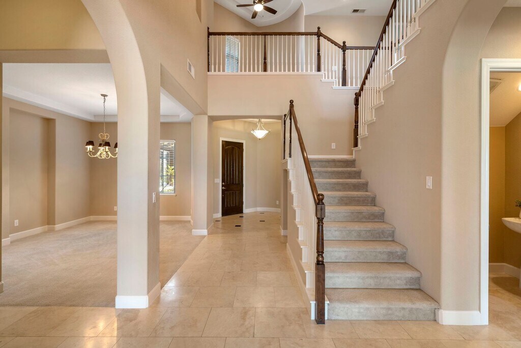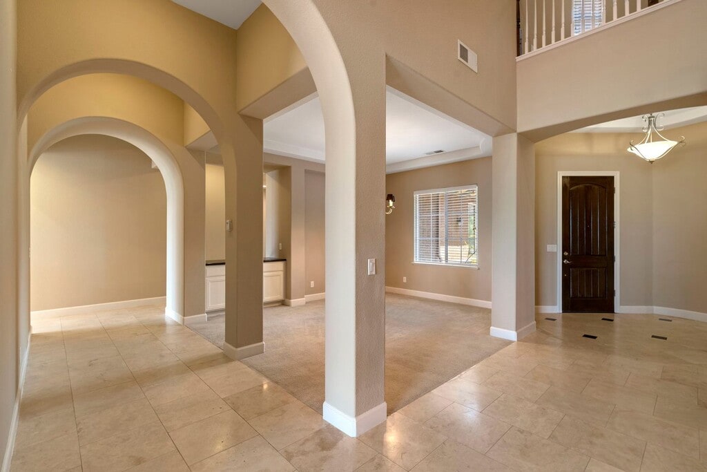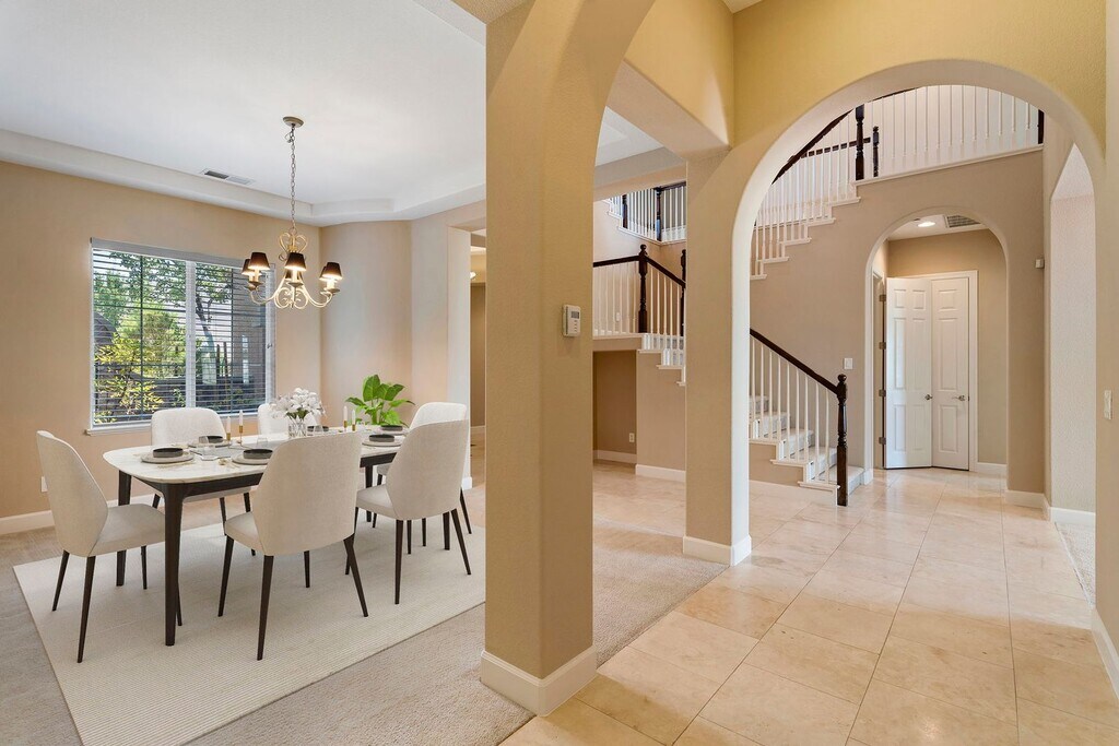 EXCLUSIVE HOME SADDLE RIDGE COMMUNITY This residence is nestled within the highly sought-after gated Saddle Ridge community, offering breathtaking mountain and valley views. Situated privately on a .442-acre lot in a tranquil cul-de-sac, this home has a spacious, fully landscaped backyard complete with a fire pit, perfect for year-round enjoyment. This exceptional property is ideal for all your entertainment desires. With its breathtaking views, you’ll never want to leave. Several photos are virtually staged: Main Level Comfort and Elegance As you enter the home, you are greeted by travertine flooring and the formal living room, where expansive windows frame the manicured backyard and the majestic Sierra Nevada Mountain Range. The large, separate, formal dining area is perfect for hosting dinner parties and family gatherings. At the heart of the home is the gourmet kitchen, featuring elegant granite countertops and backsplash, pristine white cabinetry, an oversized island with a built-in dishwasher, a breakfast bar, and a spacious pantry. The spacious kitchen includes double ovens, a built-in microwave, and a refrigerator. Adjacent to the kitchen, the expansive family room offers a cozy fireplace and a built-in entertainment space, ideal for movie nights or relaxing with loved ones. The primary bedroom on the main level provides a serene retreat. The on-suite includes a large vanity area with double sinks, jetted tub, and an oversized shower. The walking closet has ample room for clothing and off-season storage. Two separate junior suites on the main level provide comfort and privacy for guests or family members. Upper-Level Luxury and Views At the top of the stairs, you'll find an additional entertainment space with French doors opening to an upper deck, perfect for taking in the spectacular views of the Sierra Nevada Mountain Range. Two oversized bedrooms on this level share a Jack and Jill bathroom, each with personal vanities and ample closet space. A separate loft area offers the perfect workspace or reading nook. Outdoor Oasis The beautifully mature landscaped yard features a large wrap-around concrete patio, a built-in fire pit, and a variety of flowering bushes, creating an outdoor oasis for relaxation and entertainment. A large concrete slab on the side yard provides ample storage space, room for garden beds are perfect for those with a green thumb. This home includes ceiling fans throughout and has been recently updated with new interior paint. THIS PROPERTY IS UNFURNISHED