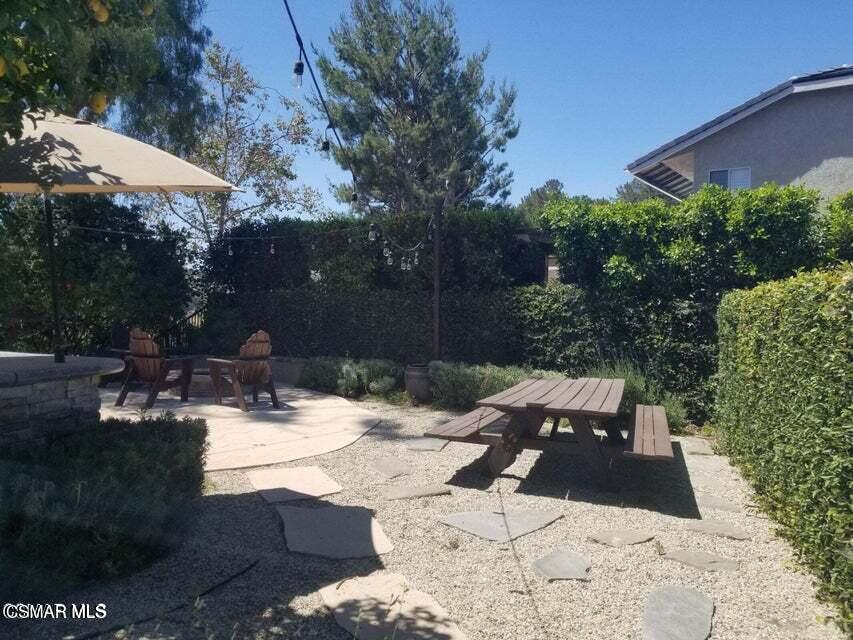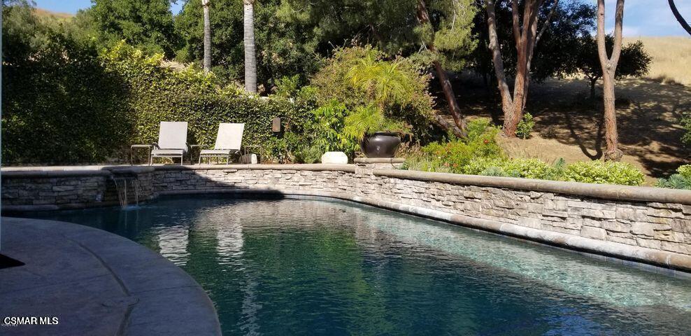 Beautifully appointed Brock Collection residence, ideally positioned at the end of a peaceful cul-de-sac.This home is waiting to welcome its next fortunate tenant.Set against a backdrop of open space, the property offers the rare feeling of a private nature retreat while remaining conveniently close to top-rated schools, parks, shopping, and dining. The foyer leads to the formal living room with a fireplace, seamlessly flowing into the adjoining dining room--perfect for entertaining. The island kitchen is a chef's delight, featuring stainless steel appliances, a raised breakfast bar, and a charming breakfast nook. It opens effortlessly to the inviting family room, complete with a cozy fireplace.Upstairs, you'll find four spacious bedrooms, while the downstairs bedroom--enhanced with custom built-in desk and bookcases--offers flexibility for guests or a home office. A full bath is conveniently located on the main level. The first floor showcases newer wood vinyl flooring, and all three bathrooms have been tastefully updated.Multiple sets of French doors along the rear of the home invite in natural light and open to breathtaking views. The private entertainer's backyard features a pool, spa, fire pit, and a custom BBQ center--ideal for relaxing or hosting gatherings. Patio furniture is included for immediate enjoyment. Additional highlights include a desirable three-car garage with direct access, RV storage, and an interior laundry room complete with washer and dryer. Easy freeway access adds to the home's overall convenience. Award winning Conejo Valley school district.