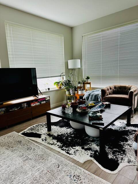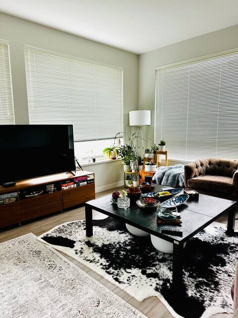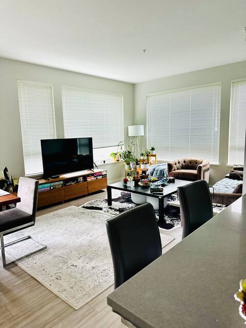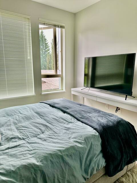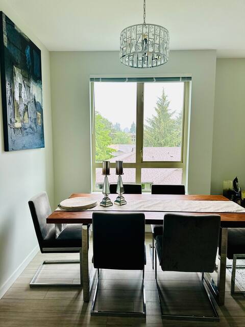 This brand-new, fully furnished spacious two-bedroom, two-bathroom condo boasts a gorgeous ensuite, a walking closet, and a private TV in the master bedroom. The second bedroom features a single bed and a large working desk. The condo is fully furnished with brand-new high-end appliances and is equipped with a fully stocked kitchen, complete with dishes, cutlery, and various gadgets. Perfect for group trips or those seeking to experience the beauty of British Columbia in style, this stylish place to stay offers a convenient location between nature and the city. North Vancouver’s most beautiful part lies in its ideal position for public transportation and outdoor activities. Nestled between mountains in North Vancouver, Lynn Valley is a picturesque neighbourhood characterized by lush greenery and extensive parkland. Lynn Headwaters Regional Park, connected to the Lower Seymour Conservation Reserve, offers attractions such as fishing at the tranquil Rice Lake and trails that connect to the North Shore’s extensive network of walkways, including the Baden Powell Trail. To arrange a viewing, please send inquiries Amenities: - Fabulous gym open seven days a week Essentials: - Cooking basics - Dedicated workspace - Dishes and silverware - Washer-dryer - Kitchen - TV - Bathtub - Heat and hot water - Bed linens - Hangers - Room-darkening shades - Window guards - Carbon monoxide alarm - Fire extinguisher - Smoke alarm - Coffee maker - Dining table - Dishwasher - Freezer - Microwave - Oven - Refrigerator - Stove - Trash compactor Lynn Valley Village offers a range of amenities to make your stay comfortable and enjoyable. Enjoy wine glasses, lake access, a private entrance, ski-in/ski-out, a backyard, an outdoor dining area, outdoor furniture, a patio or balcony, an elevator, free parking on the premises and free street parking. The village boasts a charming plaza with various shops, including Delany’s Coffee House, a popular spot for coffee and treats. Nearby, you’ll find Waves Coffee and Starbucks. For a more diverse dining experience, explore restaurants like Brown’s, Valley Sushi, Papa John’s pizza, or grab a Booster Juice. Nourish Market is a great place to satisfy your inner foodie. Don’t forget to visit the public library. Stay fit and energized with the fabulous gym, open 7 days a week. Enjoy the fastest Wi-Fi in Vancouver, Fibre 500. Lease Terms: One Year