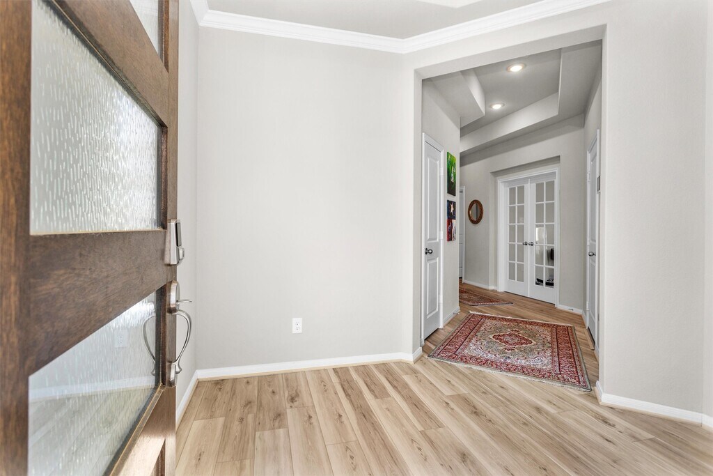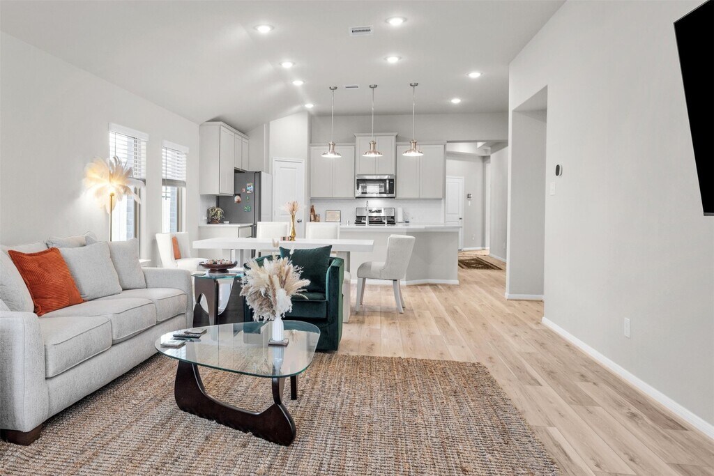 PARTIALLY FURNISHED W/ NEW FURNITURE,WASHER,DRYER,REFRIGERATOR,DECORATIVE ITEMS & SOME ESSENTIALS (see attached Non-Realty List). Located on a community lake w/ beautiful water views. This immaculate 2024-built home offers a Home Office nestled behind French doors,MUD Room,high ceilings,luxury vinyl plank floors (no carpet),Smart Home front door knob & doorbell,water softening system & large windows that fill the open floor plan w/ natural light. Kitchen is light & bright w/ quartz countertops,a water filtration system,walk-in pantry,quartz countertops,spacious island,& Whirlpool appliances. Primary Bedroom features bay windows w/ lake views & En Suite Bathroom w/ walk-in shower. Landscaped yard & covered patio w/ Rainbird Irrigation & direct access to lake & walking trails. Garage is finished with epoxy floors & Smart Home garage door opener w/ app. Move-in ready with amazing furnishings & essentials you can enjoy from day one. Owner may agree to leasing unfurnished. MLS# 89293552