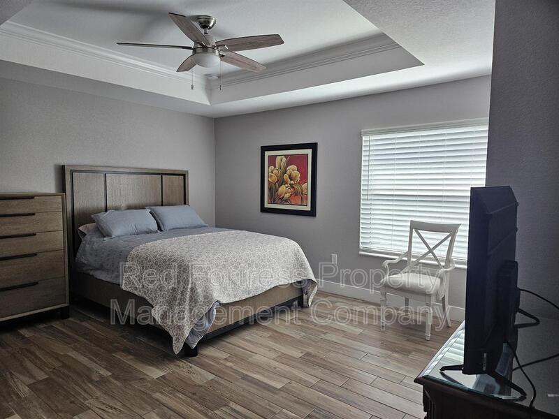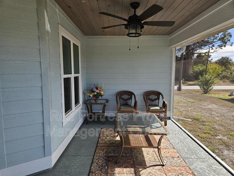 JUST GORGEOUS!! 2020 construction single family home ready for immediate occupancy. Corner lot 3 bedrooms, 2 bathrooms with screened lanai. Spacious living area, walk in closet, amazing kitchen with breakfast bar and island, dinning area, tiled throughout with wood look flooring, laundry with washer and dryer. Simply irresistible!! Dogs welcome under 20lbs. Schedule a showing! Furnished but can remove. Lawn & Bug Care Included. Home is for sale but will take it off the market if it gets rented.