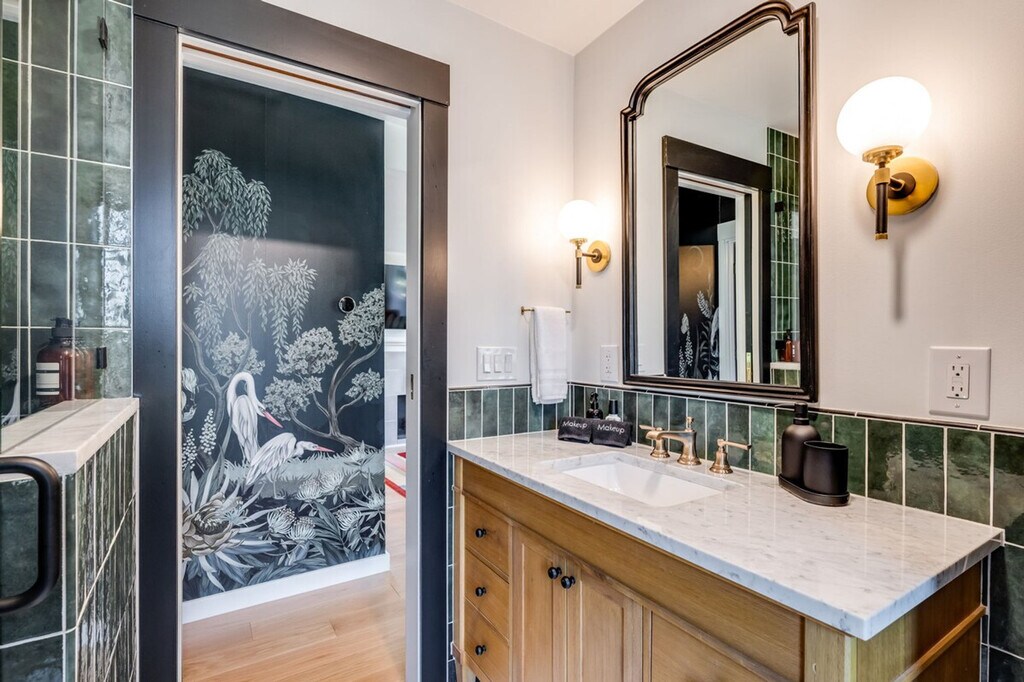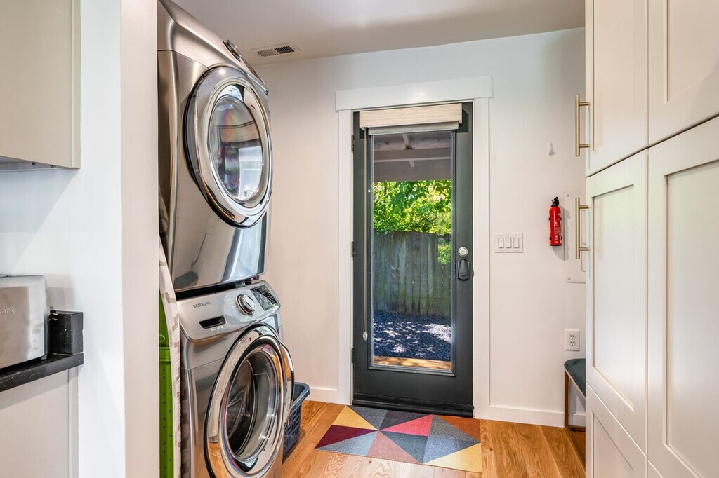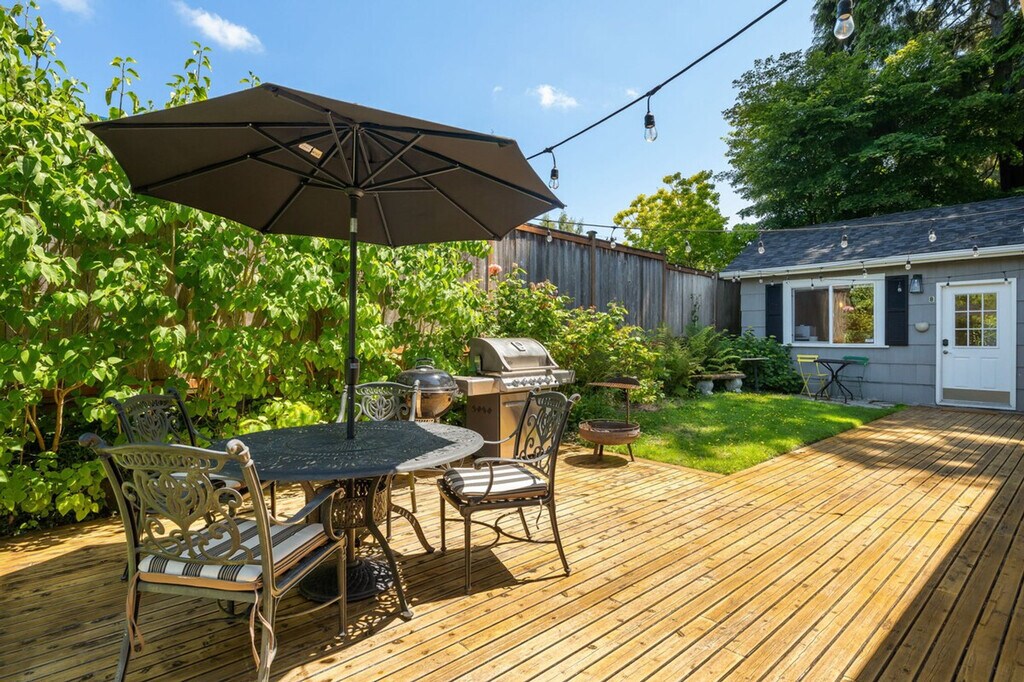 Explore this charming Craftsman cottage near the Ballard Historic District. Conveniently situated and exceptionally clean, this home offers a peaceful and safe haven with exceptional privacy. The front house (unit A) is a 1-bedroom, 1-bath single-level home approximately 650 sqft, featuring a living room with a queen sleeper, kitchen, dining area, bedroom, bath, and back door to parking. It is air-conditioned. The back house (unit B) is a 1-bedroom, 1-bath studio-type home approximately 200 sqft, with a bedroom, compact kitchenette, dining area, and bath, heated only. Enjoy Seattle summers in this beautifully updated Craftsman cottage, featuring modern amenities and tasteful decor that makes staying in feel exceptionally cozy. The gorgeous outdoor deck and large yard are perfect for relaxation and entertaining. The kitchen is stocked with high-end appliances, cookware, silverware, servingware, spices, coffee, and tea. High-quality bed, mattress, pillows, and linens ensure comfortable sleeping. Onsite washer and dryer are available for your laundry needs. Ample parking is available in the driveway and around the house. Well-trained pets are welcome with a fee of $50 per night. Additional guest fees are $25 per person per night, up to a maximum of 6 guests. Located just a few blocks from Golden Gardens and Sunset Hill Park, and within walking distance to coffee shops, restaurants, and more, you'll have everything you need nearby. Easy access to Downtown Ballard by bike or car makes city exploration convenient. This home is in Ballard, a hip and trendy neighborhood northwest of downtown Seattle, with many bars, ice cream shops, tea and coffee parlors, and access to a lovely beach park at Golden Gardens. Ballard Ave is the key retail street, and if you stay here on Sundays, don't forget to check out the farmers market on Ballard Ave. This property consists of two separate houses (unit A and unit B) on the property, each with its own private entrance, ensuring privacy and no shared amenities. You can rent each house separately or together to sleep up to a total of 6. Strictly no parties and events, quiet hours between 10pm-8am, no smoking or vaping of any kind anywhere on the property including outdoor areas, no digital piracy, and no shoes in the home. A $500 fine applies per violation. Registration Number: STR-OPLI-24-000659 [SI]
