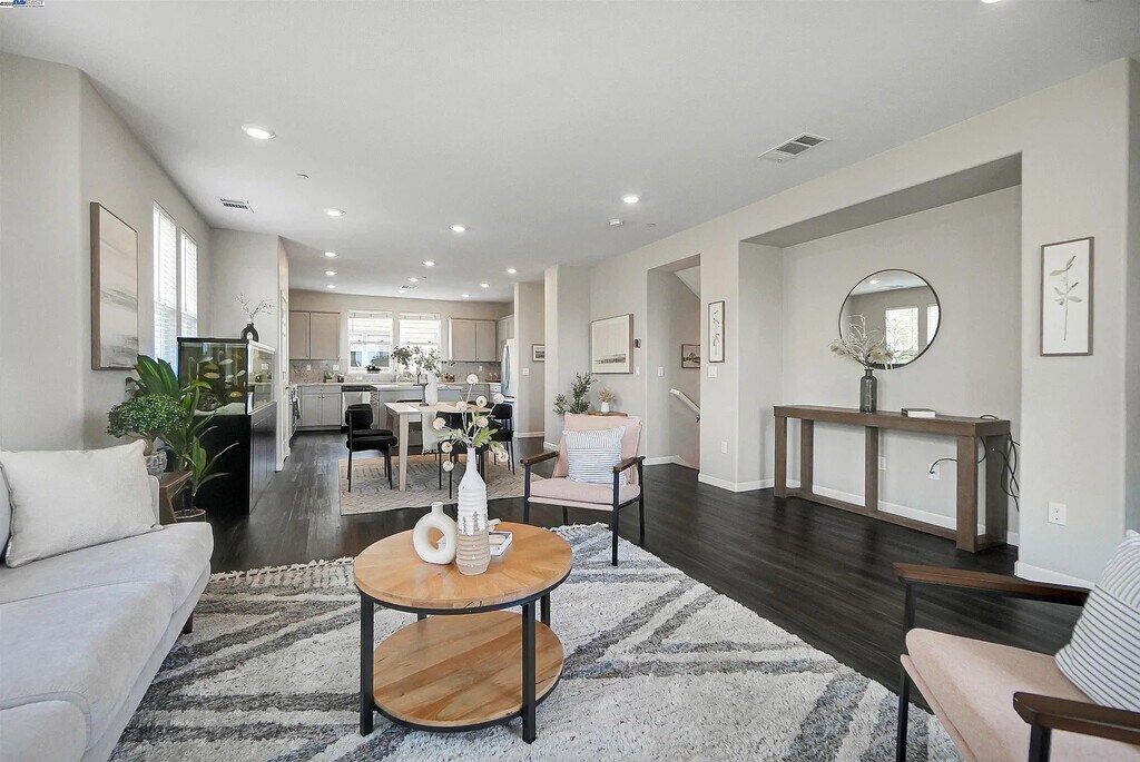 Renting 3 individual bedrooms out in a 4BR/3.5BA newly built, modern home in Hayward, CA with full kitchen appliances, large living spaces and balcony, and more. Convenient location to get into SF, San Mateo, Oakland and South Bay all within 15-30 minutes. DM me for exact address. Rooms available for rent (Does not include utilities). Below are 1+ year leases. Pets are extra and case by case. 1) Master bedroom with walk in closet and private ensuite bathroom - $1900 2) Master bedroom and bathroom - $1600 3) Bedroom and shared restroom with 1 other person (myself and I am very clean/quiet) - $1200 Highlights: -Great lighting: corner unit + modern interior -Spacious layout: 2100 sqft with large living room & modern, open kitchen -Convenient location: cloe to Sprouts, Safeway, restaurants, cafés -Access to transportation: near I-880, 20 minutes to the Bay Bridge, close to Hayward BART -Fully equipped appliances: washer, dryer, dishwasher, stove, refrigerator 30+ day, fully furnished stays are also welcomed. Great for travel nurses, consultants, relocation, etc. Furnishing/furniture will appear different than this.