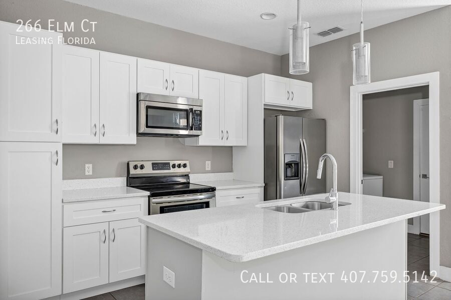 Welcome to this beautifully maintained 4-bedroom, 2-bath modern home located at 266 Elm Ct in Poinciana. This spacious single-story property features an open-concept layout designed for comfortable living and entertaining. The updated kitchen comes equipped with new appliances, ample cabinet space, and a functional layout that flows seamlessly into the dining and living areas filled with natural light. The primary suite offers privacy and comfort with its own ensuite bathroom featuring a spacious vanity, modern fixtures, and a walk-in shower. The second full bathroom is conveniently located for guests and additional bedrooms and includes a clean, updated vanity and a full bathtub and shower combination. Both bathrooms are designed with a modern touch and easy-to-maintain finishes. The home also includes a two-car garage, a spacious yard without a fence, and plenty of outdoor space to enjoy Florida living. Conveniently located near schools, shopping, parks, and major roadways, this property offers both comfort and accessibility. Perfect for families or anyone looking for a modern, move-in-ready home in a growing community.