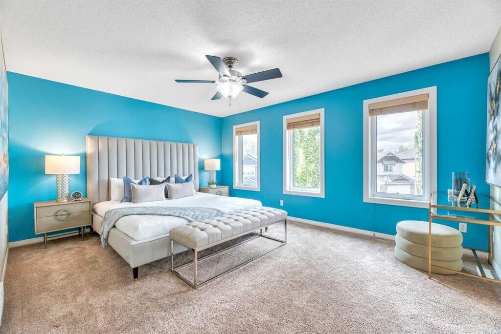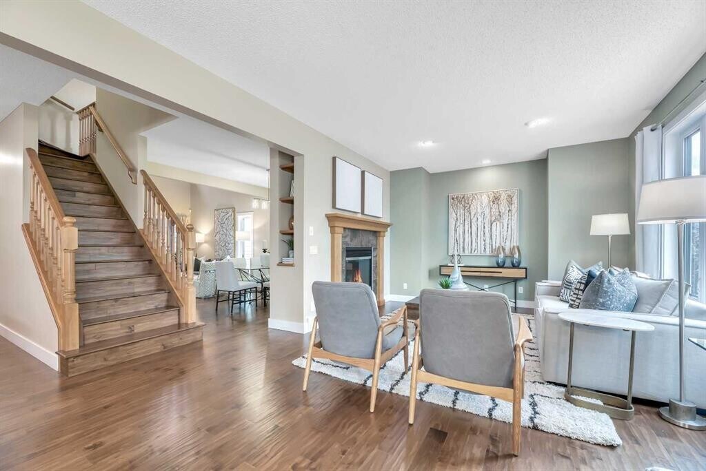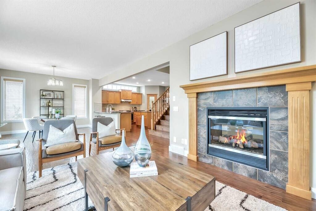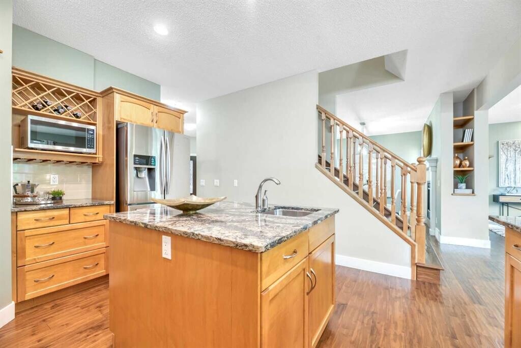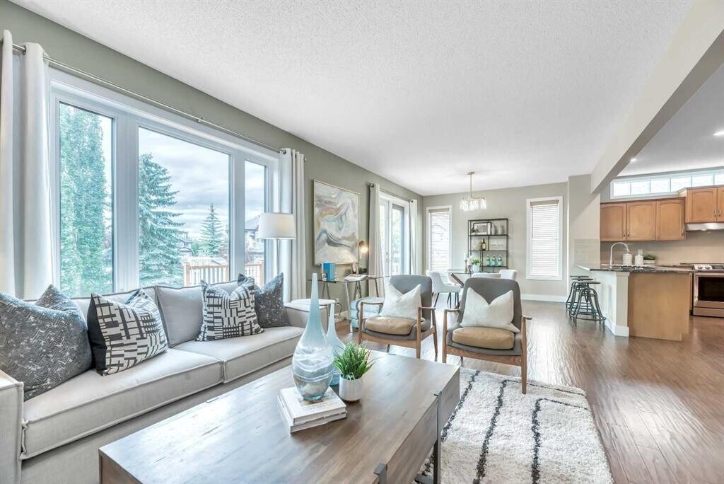 Beautiful Rocky Ridge Retreat – Spacious, Upgraded, and Family-Friendly Nestled at the end of a quiet cul-de-sac in Rocky Ridge, this stunning home sits on a sunny, pie-shaped lot surrounded by mature trees—offering peace, privacy, and room to grow. With nearly 3,500 sq ft of modern, updated living space, this home blends warmth, sophistication, and functionality. Step into a grand foyer with soaring 18-foot ceilings and rich maple hardwood floors. The open-concept layout flows into a chef's dream kitchen featuring quartz countertops, custom cabinetry, premium stainless appliances, and an oversized walk-through pantry. The bright breakfast nook opens onto a multi-tiered cedar deck and a west-facing backyard—perfect for outdoor dining, relaxing, or entertaining. Upstairs offers four spacious bedrooms and a versatile loft ideal for an office or play space. The luxurious primary suite includes a spa-inspired ensuite and a generous walk-in closet. The fully finished basement adds even more flexibility, with a fifth bedroom, a granite wet bar, and ample space for movies, games, or guests. Ideally located minutes from schools, parks, the Rocky Ridge YMCA, LRT, shopping, and major routes—this home is a perfect blend of lifestyle and location. Whether you're hosting family gatherings or enjoying quiet evenings under the sunset, this is a home where lasting memories are made.