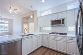 Stunning REMODELED golf course home with gorgeous views of the Palm Valley 11th fairway! Brand new flooring and interior paint throughout! Beautiful kitchen features new white cabinets with waterfall quartz counters, stainless appliances, new single basin stainless sink and faucet, recessed lighting and designer pendants! Light and bright with high ceilings and tons of windows with silhouette blinds throughout! Two spacious bedrooms with new ceiling fans! Large laundry room with quartz counter and cabinets. NEW HVAC PLUS SOLAR PANELS and a smart thermostat make this home incredibly energy efficient with low power bills! Huge covered patio with retractable awning, beautiful landscaping and gorgeous views! Oversized two car garage with epoxy floors, overhead storage and golf cart parking! PERFECT LOCATION around the corner from the Palm Valley Golf Club, Miller's Tavern restaurant and Mountain Shadows Community Center featuring a pool, tennis, clubs, fitness, and more!