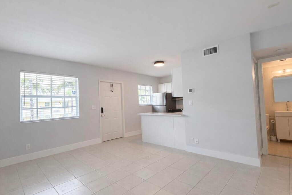 Cozy 2 bedroom 1 bathroom condo located in a charming Key West style gated community a few blocks north of Wilton Drive. Bright and modern open kitchen w/ bar featuring white shaker cabinetry,sleek quartz countertops,and stainless steel appliances. Stylish bathroom with glass-enclosed tub/shower combo,contemporary vanity w/ storage,updated fixtures and clean,neutral finishes. Two equally sized bedrooms with ample closet space,one of which can easily serve as a home office. Includes a Eufy smart lock,dedicated parking space,heated pool,and convenient on-site laundry facilities. No pets allowed. MLS ID B26014579