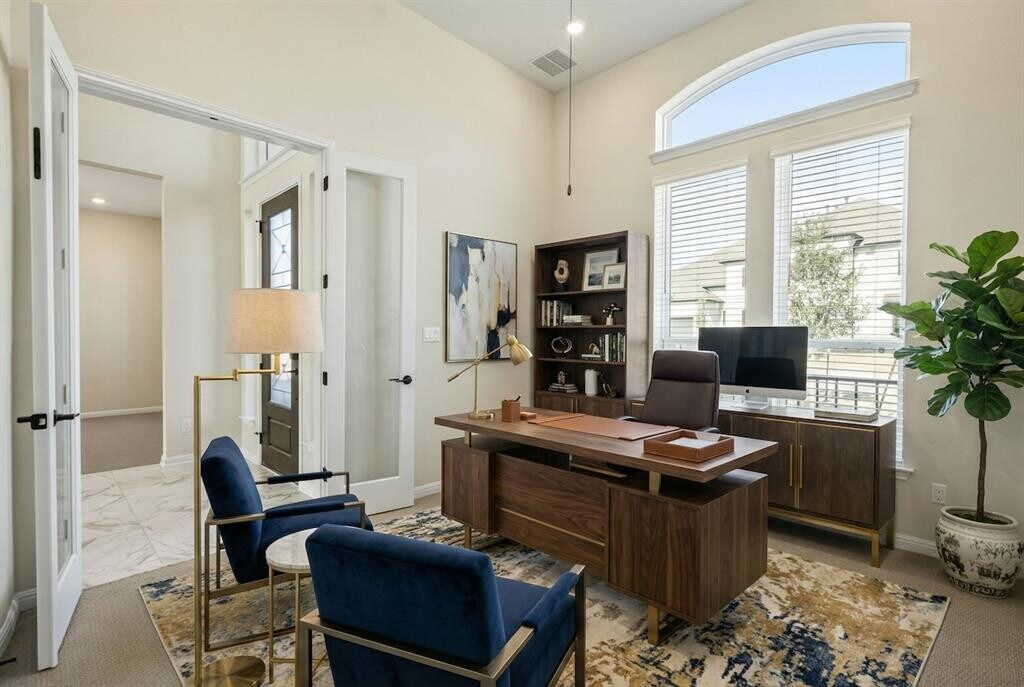 Elevated Hill Country living with a view-forward setting and a floor plan built for real life. This 80’ Florence Series Arabella in Travisso sits on a premium view lot with rolling greenbelt and hill country panoramas, enjoyed from multiple outdoor spaces including a front balcony, an extended covered back patio, and an upstairs balcony overlooking the backyard. Spanning approximately 4,300 sq ft, this 5-bedroom, 4.5-bath home showcases premium upgrades and a thoughtful blend of elegance and functionality. The main level features an extra-large primary suite, a private guest bedroom with en-suite bath, a dedicated office ideal for remote work, and a formal dining space designed for hosting. Upstairs offers three additional bedrooms, a dedicated media room for movie nights, and a large flex space perfect for a lounge, game room, or second living area. A 3-car garage adds the storage and practicality tenants at this level expect. Located in acclaimed Leander ISD, residents enjoy Travisso’s resort-style amenities including a pool, fitness center, tennis courts, and scenic trails—offering a lifestyle that feels both refined and connected to the Hill Country. Landscaping is included in the rent. Please note all photos have been virtually staged. MLS ID 5611688