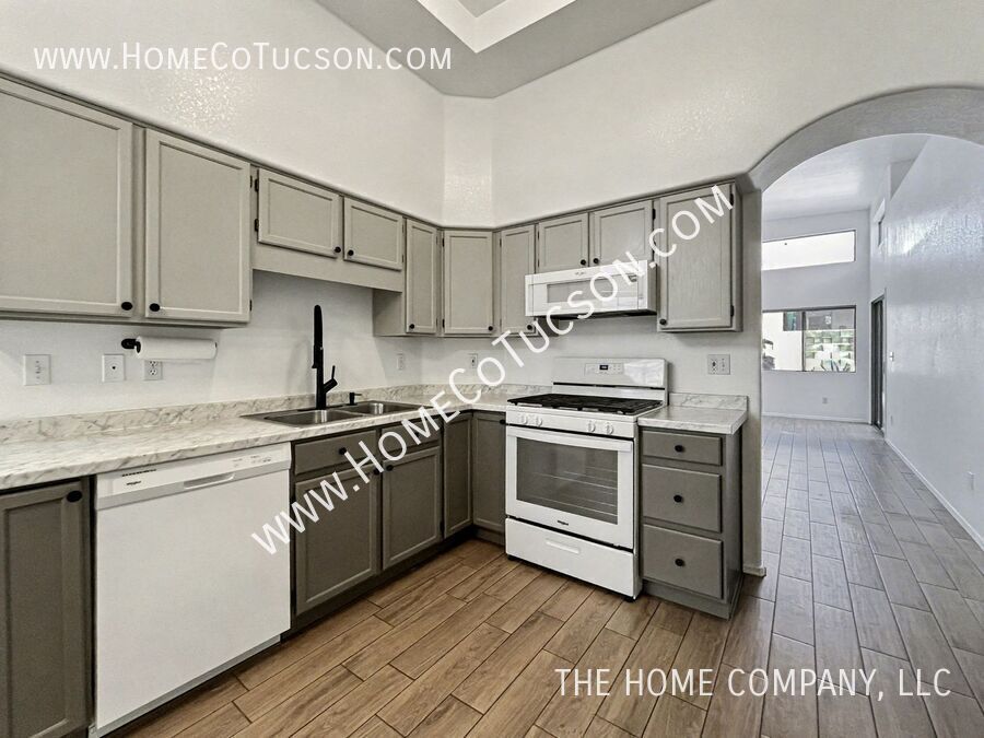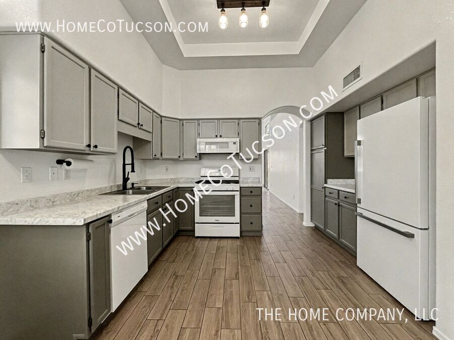 Welcome to this beautifully updated three-bedroom, two-bath home located in the desirable Linda Vista Estates neighborhood. Step inside to a spacious living area filled with natural light, featuring tall ceilings and stylish wood-look tile flooring throughout the common areas and primary bedroom. The kitchen offers a modern touch with new appliances, updated countertops, and contemporary fixtures, complemented by a bright eat-in nook and large windows. Just off the kitchen is a convenient laundry room with a full-size washer and dryer. The split-bedroom floor plan with a primary suite featuring a walk-in closet, large custom-tiled shower, and extended vanity. Both bathrooms and the kitchen have been tastefully remodeled for a fresh, modern look. Enjoy the outdoors in the walled backyard with low-care turf and two concrete patio areas — perfect for relaxing or entertaining. Additional highlights include air conditioning, a two-car garage, and a location within a community that offers sidewalks, a park, and convenient access to shopping and dining. HOA: HOA:HOA: Linda Vista Estates LCM Group LLC UTILITIES: Paid by the tenant. VIDEO TOUR: Explore this property with our comprehensive video tour to get a closer look at every detail before scheduling an in-person visit. **Walking Tour** **Virtual Tour** To review our rental qualifications, apply, view additional video tours, or schedule a showing, please visit: **Website: ** For questions during business hours, please contact us: Text: Email: QUALIFYING REQUIREMENTS: Email for a full disclosure of fees and to review a blank lease document. Experience the difference with The Home Company! Visit to schedule a showing, apply, view additional media for each available property, and review detailed qualifying requirements and information. Proudly setting the standard for property management in Arizona, The Home Company is dedicated to improving the rental experience for both tenants and landlords. As an Equal Opportunity Housing provider, we are committed to fairness and transparency in every interaction. All our agents are licensed Real Estate Professionals, delivering knowledgeable support and exceptional service. Please note, The Home Company, LLC exclusively represents the Landlord in all property-related matters. As the Landlord’s authorized Agent, our responsibility is to act in their best interests throughout the rental process. Call: (Leasing Department, Monday–Friday, 10 AM–4 PM) Carpet Laundry Room Lots Of Windows & Natural Light Metro Water Modern Light Fixtures One Story Primary Bedroom With Ensuite Bathroom Southwest Gas 1 Split Bedroom Floorplan Tall Ceilings Three Bedrooms Tile Flooring Trash Service Of Tenants Choice Tucson Electric Power Turf Two Car Garage Updated Baths Updated Kitchen Walled Rear Yard Washer And Dryer Included