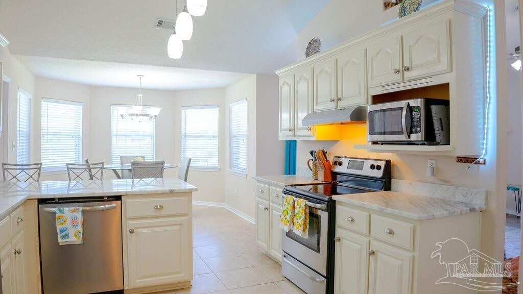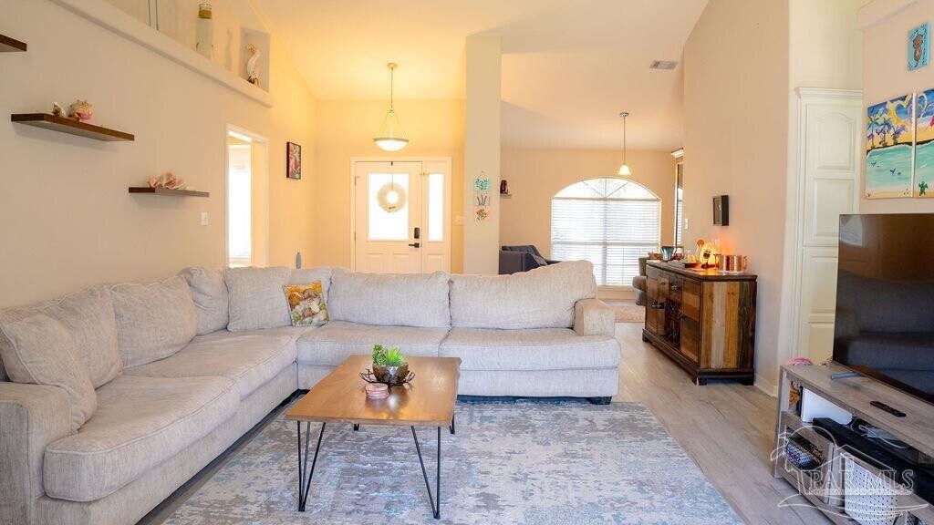 This all-brick home features an inviting open-concept layout with a cozy fireplace,spacious living area,and a dedicated reading nook. The kitchen is equipped with plenty of cabinetry,a breakfast bar,and flows seamlessly into the dining area framed by a bay window overlooking the backyard. The primary suite includes two walk-in closets,double vanities,a soaking tub,and a separate shower. Two additional bedrooms and a full bath are situated on the opposite side of the home for extra privacy. Enjoy a fully fenced backyard with a storage shed,a 2-car garage,and a covered front entry. The home is pet-friendly and available fully furnished,making it perfect for a comfortable short- or long-term stay. Located just minutes from Navarre Beach and local amenities — this home combines comfort,convenience,and coastal charm