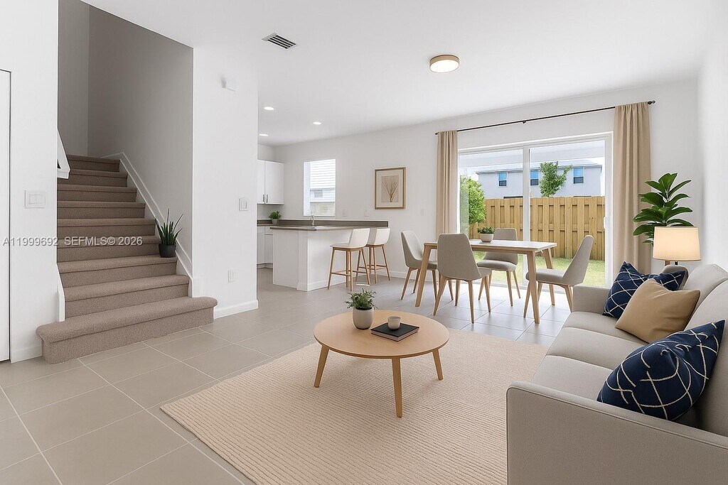 New Construction two-story townhouse boasts three spacious bedrooms, two full bathrooms, and a half-bath. The open layout features a family room, dining area, and kitchen, along with a separate living room for additional relaxation and entertainment space. All bedrooms are conveniently located on the second floor. The kitchen is outfitted with stainless steel appliances, quartz countertops, and ample cabinet storage. A large, fenced patio provides the perfect spot for unwinding or hosting guests. Ideally situated near schools, Turnpike Exit 2, shops, restaurants, a hospital, the Amazon Distribution Center, and Homestead Air Base. MLS # A11999692