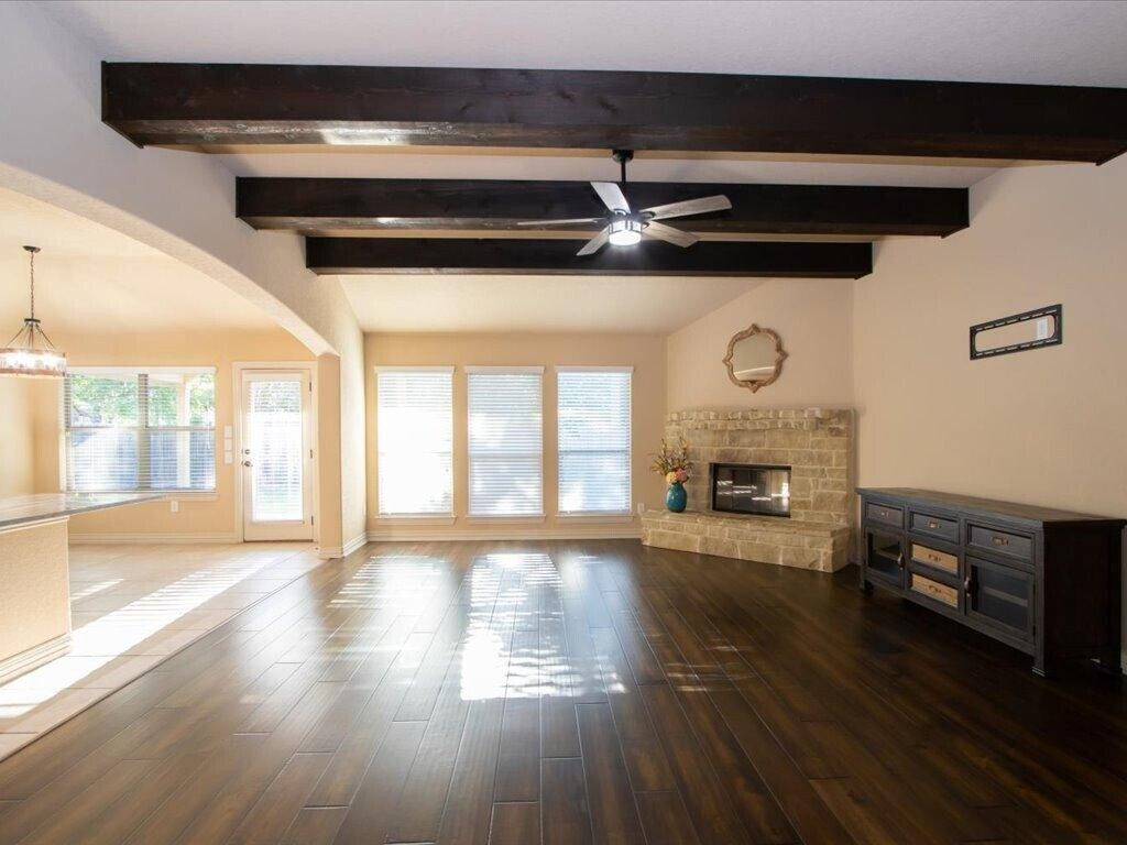 Welcome to this stunning one-story rental home, situated on an oversized lot in the highly coveted Sable Chase subdivision nestled between Leon Springs & Fair Oaks Ranch. This property features a spacious, open floor plan that seamlessly connects the living areas, creating an inviting atmosphere perfect for relaxation and entertaining. The charming eat-in kitchen features an oversized island, designer countertops, built-in stainless steel appliances, and gas cooking, making it a chef's delight. Retreat to the sizable primary suite, which showcases a bay window and a luxurious bathroom equipped with a garden tub, large walk-in shower, granite counters, and a large walk-in closet. Step outside to discover a picturesque backyard with an extended covered patio. The oversized 2.5-car garage adds extra convenience and storage. The full sprinkler system ensures your lawn stays lush year-round. The water softener saves appliances and creates better quality water for your family.