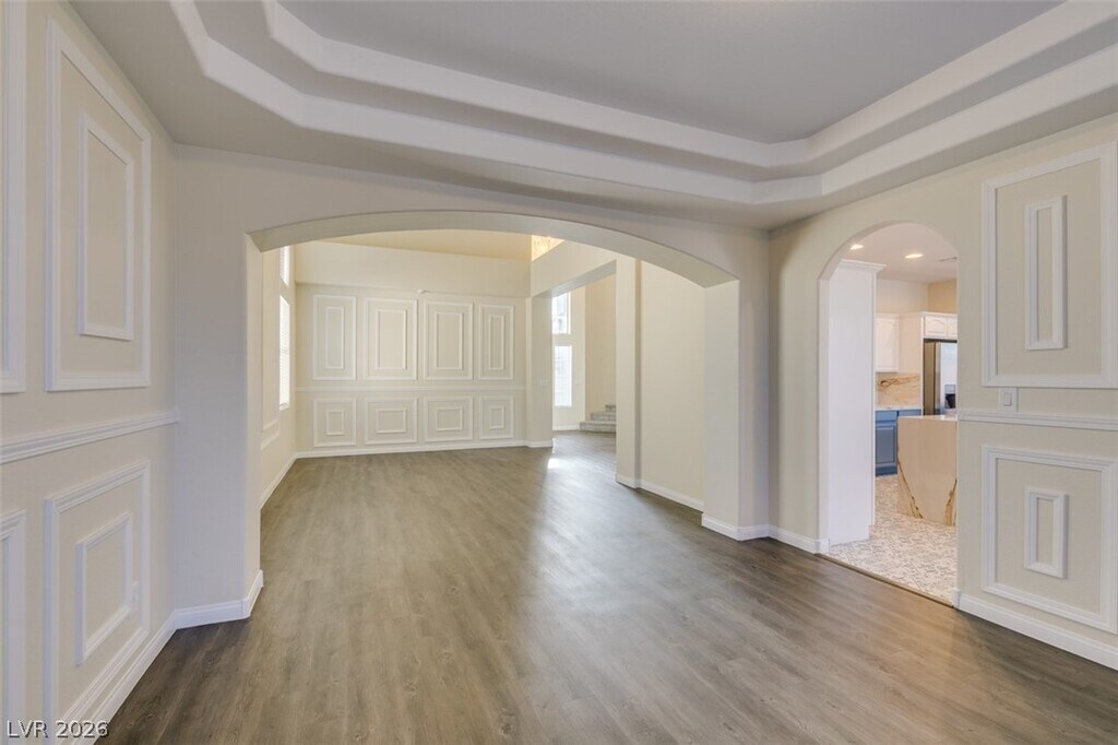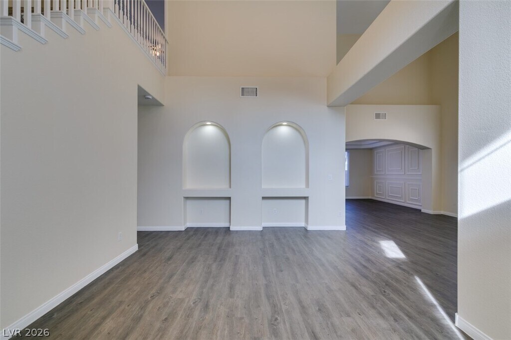 Located within the gated Southfork community in the heart of Green Valley, this exceptional home impresses from the moment you step inside. A welcoming entry with soaring ceilings and built-in display niches sets an elegant tone, while a private office, bedroom, and full bath downstairs offer flexibility for guests or multigenerational living. The expansive floor plan features five bedrooms and four and a half baths, including formal living and dining areas enhanced by dramatic ceiling heights. The stunning kitchen showcases a large island, quartz countertops, and a sunny breakfast nook that opens to an oversized family room—perfect for gathering and everyday comfort. Upstairs, the spacious primary suite is joined by five additional bedrooms, providing room for everyone. The beautifully landscaped backyard is designed for entertaining, complete with a sparkling pool, relaxing spa, and charming gazebo for unforgettable outdoor enjoyment. Pet considered. Base rent $4163 + $37 RBP.