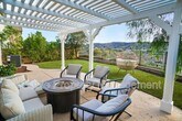 Welcome to this absolutely beautiful home featuring incredible curb appeal, professional hardscape and landscape, and a long driveway with a cozy sitting area. This spacious two-story home offers 5 bedrooms, 3 bathrooms, and a large loft — with one bedroom and full bathroom conveniently located downstairs. Step inside to an open floor plan filled with natural light and breathtaking views from nearly every rear-facing window. The living room and family room feature recessed lighting, ceiling fans, and a charming fireplace. The formal dining area includes an upgraded light fixture and space perfect for entertaining. The remodeled kitchen is a chef’s dream, showcasing custom cabinetry, upgraded countertops with a stylish backsplash, a center island, stainless steel appliances, and a window overlooking the backyard views. The entire home boasts custom paint and thoughtful designer touches throughout. Upstairs, you’ll find four spacious bedrooms plus an enclosed oversized loft with recessed lighting, a ceiling fan, and wood shutters—perfect as a media room, playroom, or office. The primary suite offers a luxurious bathroom with separate tiled shower and soaking tub, dual vanities, and a large walk-in closet. The hallway bathroom features dual sinks and a shower/tub combo, while the laundry room provides built-in cabinets and countertop space for convenience. Additional highlights includes a new AC unit, solar panels, Tesla charger, and a three-car attached garage. Enjoy the beautiful private backyard with a covered patio, sitting area, and panoramic views of open land and paseos—perfect for relaxing or entertaining guests. The sought-after River Village gated community offers resort-style amenities, including a pool, spa, BBQ area, and scenic walking paths. Conveniently located near top-rated schools, shopping, parks, and freeway access. This home truly has it all—modern upgrades, solar, Tesla charger, three car garage, amazing views, and a prime location!