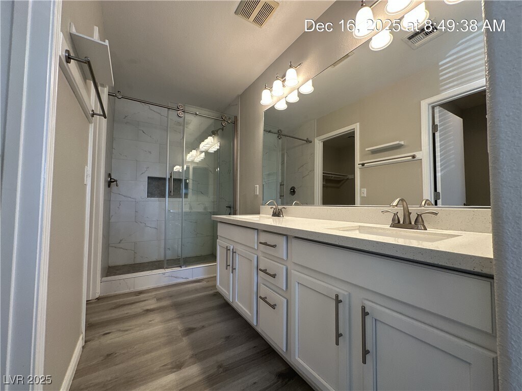 Located in the desirable Summerlin area, this beautiful two-story home offers a bright, modern feel with quality upgrades throughout. Luxury plank flooring flows through the entire home—no carpet—creating a clean, cohesive look. The open living area is filled with natural light and provides a comfortable space for both relaxing and entertaining. The kitchen is a standout feature with quartz countertops, crisp white cabinetry, and stainless-steel appliances, blending style and functionality. Upstairs, the spacious primary bedroom includes a beautifully designed walk-in shower, while the oversized secondary bedrooms offer plenty of room to spread out. Outside, enjoy a low-maintenance yard with a large patio area, perfect for outdoor dining or quiet evenings. Conveniently located just minutes from shopping, dining, and easy freeway access. Base rent: $1,958 + $37 RBP.
