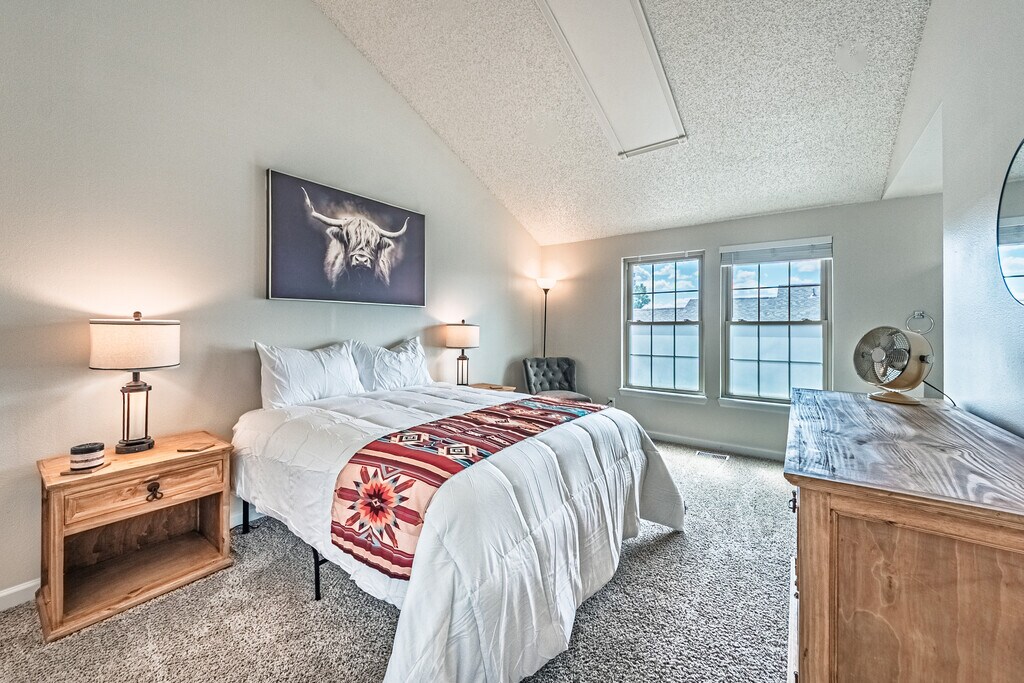 Location - Cottonwood Creek Townhomes - School District 20 This fully furnished townhome is ideal for traveling military, medical professionals and business travelers. It is also set up to support temporary housing for insurance or relocation needs. Flexible lease options range from month-to-month up to longer-term. Special offers available for lessees. Wi-Fi, water, garbage, professional cleaning and snow removal are included in the rental price. Central heat and A/C, updated interiors, stainless steel appliances, wood-burning fireplace, double hung/double paned windows, attached 2 car garage, in-unit washer and dryer. The primary bedroom features dual closets and a queen bed. The upstairs bath has dual vanities and a tub/shower combo. The second bedroom features a double bed. Bedroom three is set up as an office and features an attached bathroom with a walk-in shower. Smoking of any kind including medical marijuana is not allowed in the home or garage. Northern Colorado Springs located in the coveted School District 20. You will find the best in restaurants and shopping. Our community features a generous sized swimming pool, tennis courts, and club house which can be rented for a small fee. There is plenty of guest parking throughout the complex. The grounds are maintained by the HOA and there are plenty of lush outdoor spaces to enjoy. The Cottonwood Creek biking path is nearby. Cottonwood Creek Park is 5 minutes away. Minutes from several military bases, hospitals, I-25, and Powers.