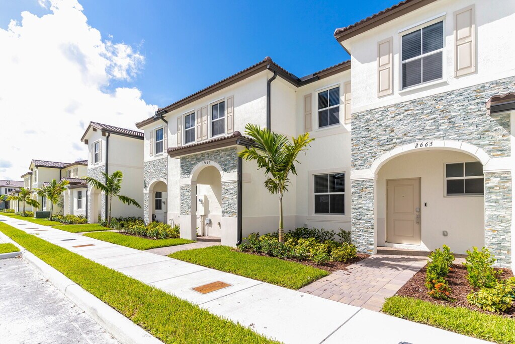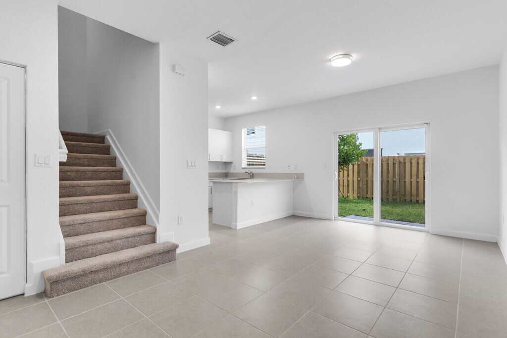 Brand-new two-story townhouse offers three spacious bedrooms, two full bathrooms, and one half-bath. The open layout features a family room/dining room, and kitchen, complemented by a separate living room for additional relaxation and entertainment space. All bedrooms are on the second floor. Kitchen boasts stainless steel appliances, quartz countertops, and ample cabinet space. Elegant ceramic tile flooring on the main level, the second floor is carpeted for added comfort. A large, fenced patio provides the perfect setting for relaxation or entertaining. Conveniently situated near schools, Turnpike Exit 2, retail shops, restaurants, a hospital, Amazon Distribution Center, and Homestead Air Base. Association approval requires 30 days, and tenants are responsible for water and electricity.