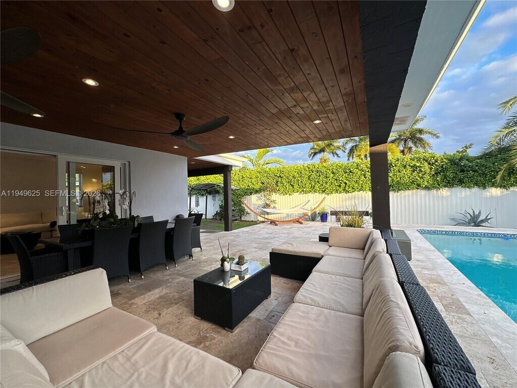 Welcome to this beautifully updated single-family pool home offering true indoor–outdoor living. The spacious backyard features a sparkling pool, outdoor dining area, lush landscaping, and plenty of room to entertain. A generous side yard easily accommodates a boat, plus a circular driveway provides ample parking. Inside, the layout includes 3 bedrooms, formal dining, living, and a separate family room. Wide stacking sliding glass doors connect the family room to the covered patio, creating a seamless transition to the pool area and flooding the home with natural light. Additional features include impact windows, aluminum roof, and modern finishes. Excellent location close to major roadways, shopping & dining. Available immediately! MLS # A11949625