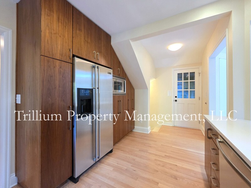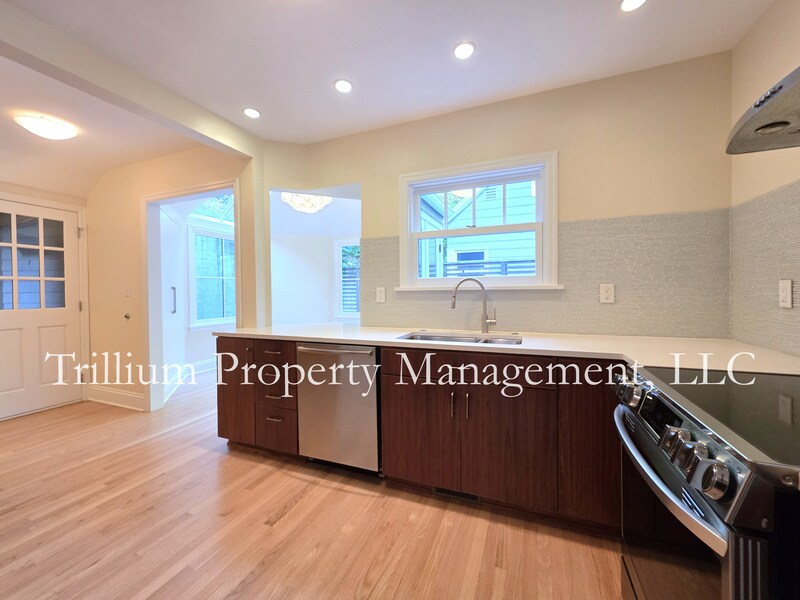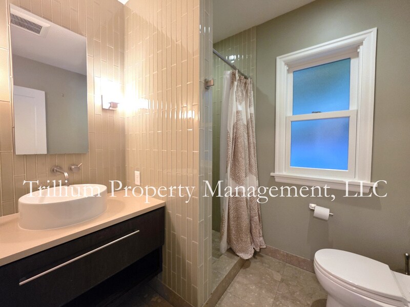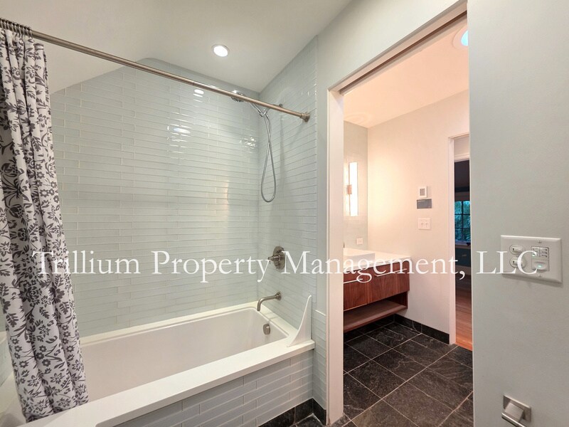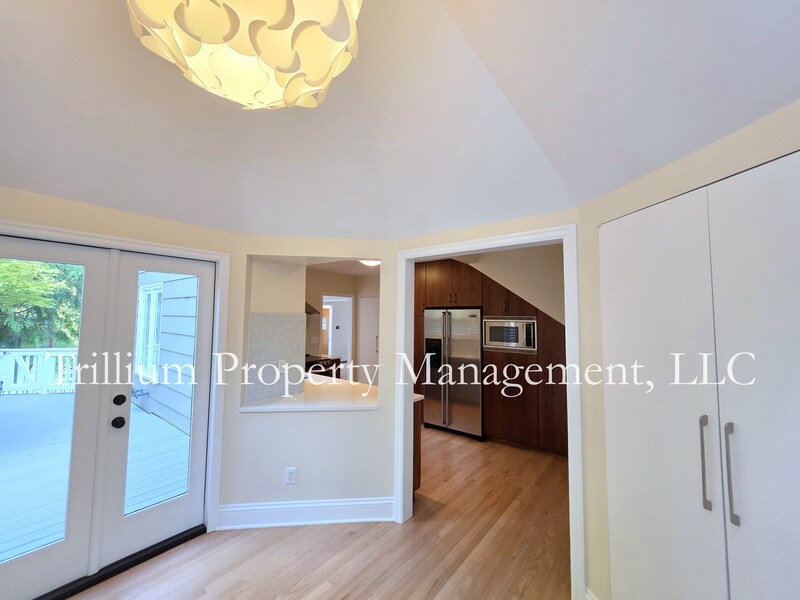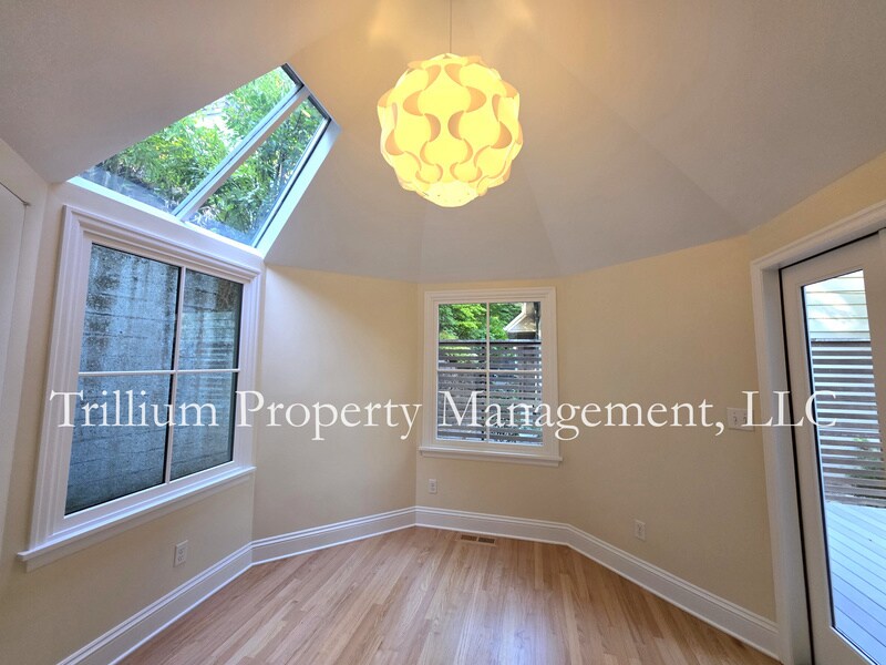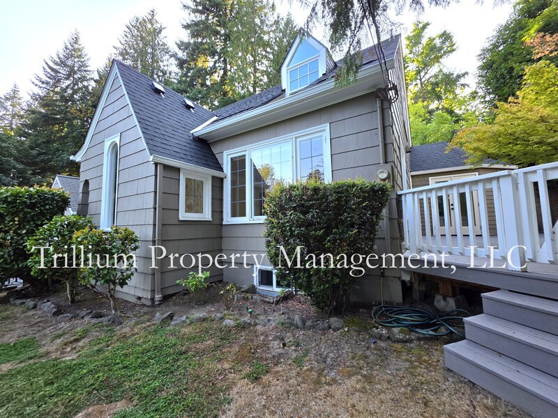 Beautiful and impeccably remodeled southwest home featuring 3 bedrooms upstairs, large office/library downstairs, huge finished basement, spa like bath, separate studio with kitchen and bath over garage, fenced in deck, small front yard, gas fireplace. Close to OHSU and backing up to Marquam Nature Park. Central AC, lovely vintage built ins, hardwoods, window seats, newer high end finishes throughout. One car garage. Nonsmoking property, landlord pays for landscape maintenance and garbage, two small (under 20 lbs, no exceptions) pets welcome. No new dogs during a tenancy. One year renewable lease--long term rental, available now, full first, full last, and 1/2 month's rent deposit to move in, no smoking on the premises, no dogs over 20 lbs. no exceptions, proof of renter’s liability insurance required before and during tenancy, $38 application fee for credit and background screening. The Open Application Period will begin on 9/27 at 8:00 am. This is not a type A accessible unit. In person and remote viewings available via Zoom, please make a note of it in the appointment scheduling app and a link will be sent at the appointment time. The complete notices, contact form, application, and screening criteria are available from the trilliumpdx website. Briefly, they are: 2x the rent in monthly income or 2x the annual rent in liquid funds, no negatives on a credit report, 3 years of positive, current, complete, rental references or mortgage history, no negatives on a credit report, reasonable verification of identity, max 20% debt to income ratio, cosigners not accepted. Applicants must be prepared to sign a lease within two days of approval, units can't be held longer than 14 days. Applications are processed in the order received, and per City of Portland regulations. All adult occupants will need to be screened separately, and to pay for screening, including background and/or financial depending on applicant financial consideration status. Screening fees are $38 per adult, payable after all applications are in, and complete. All adults must submit separate applications.